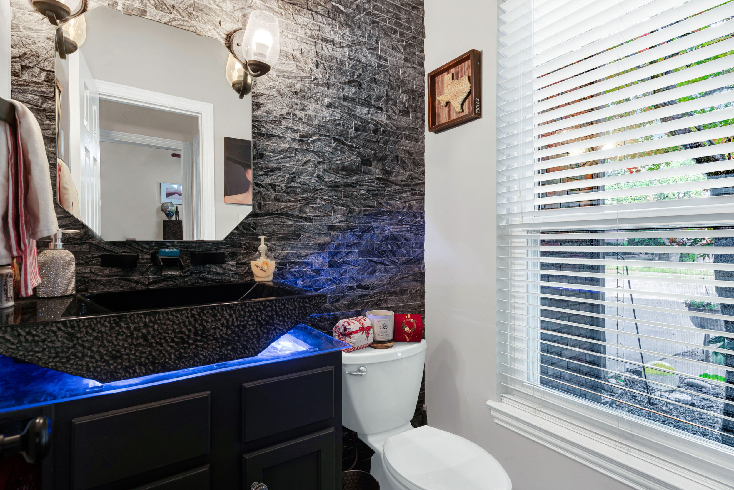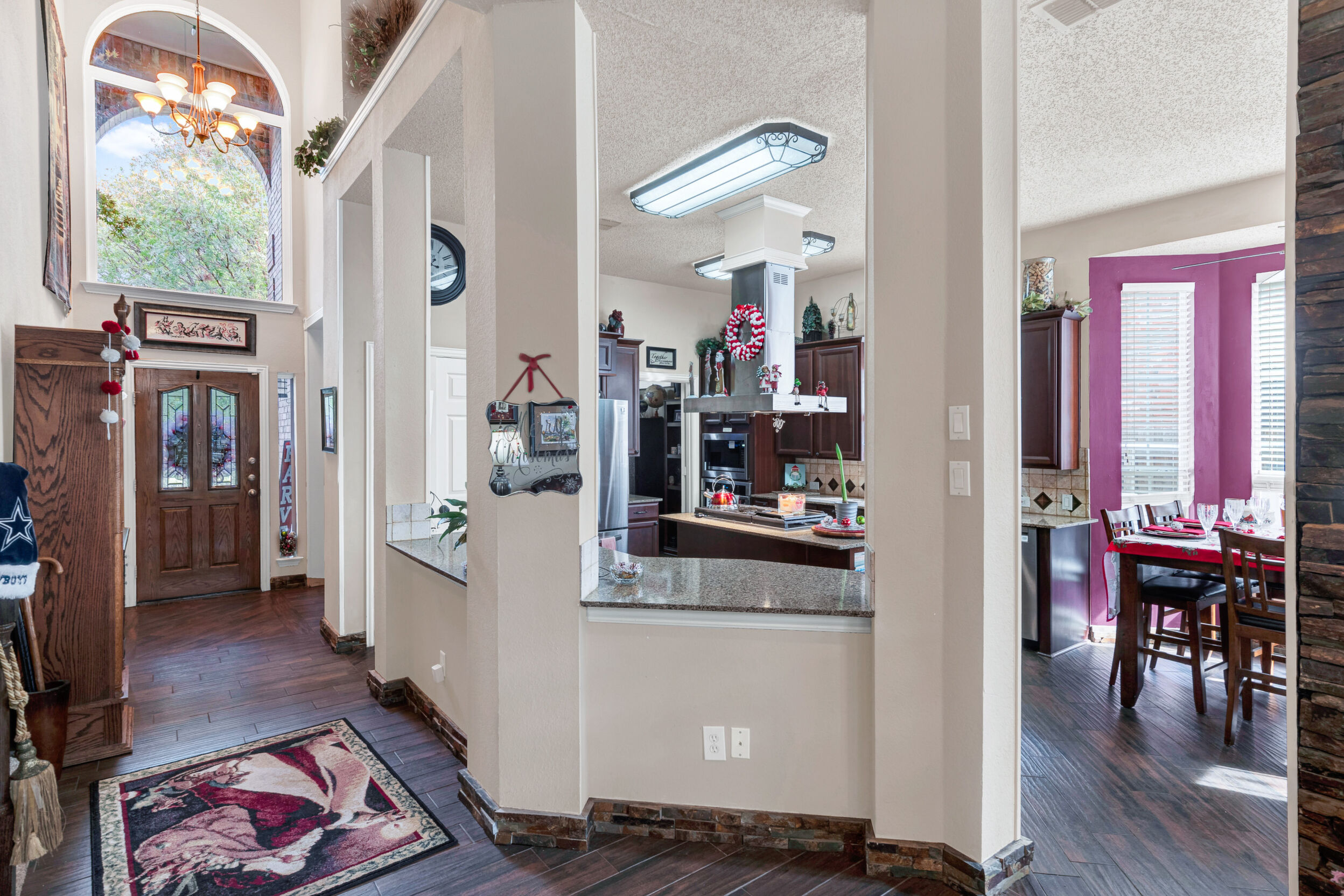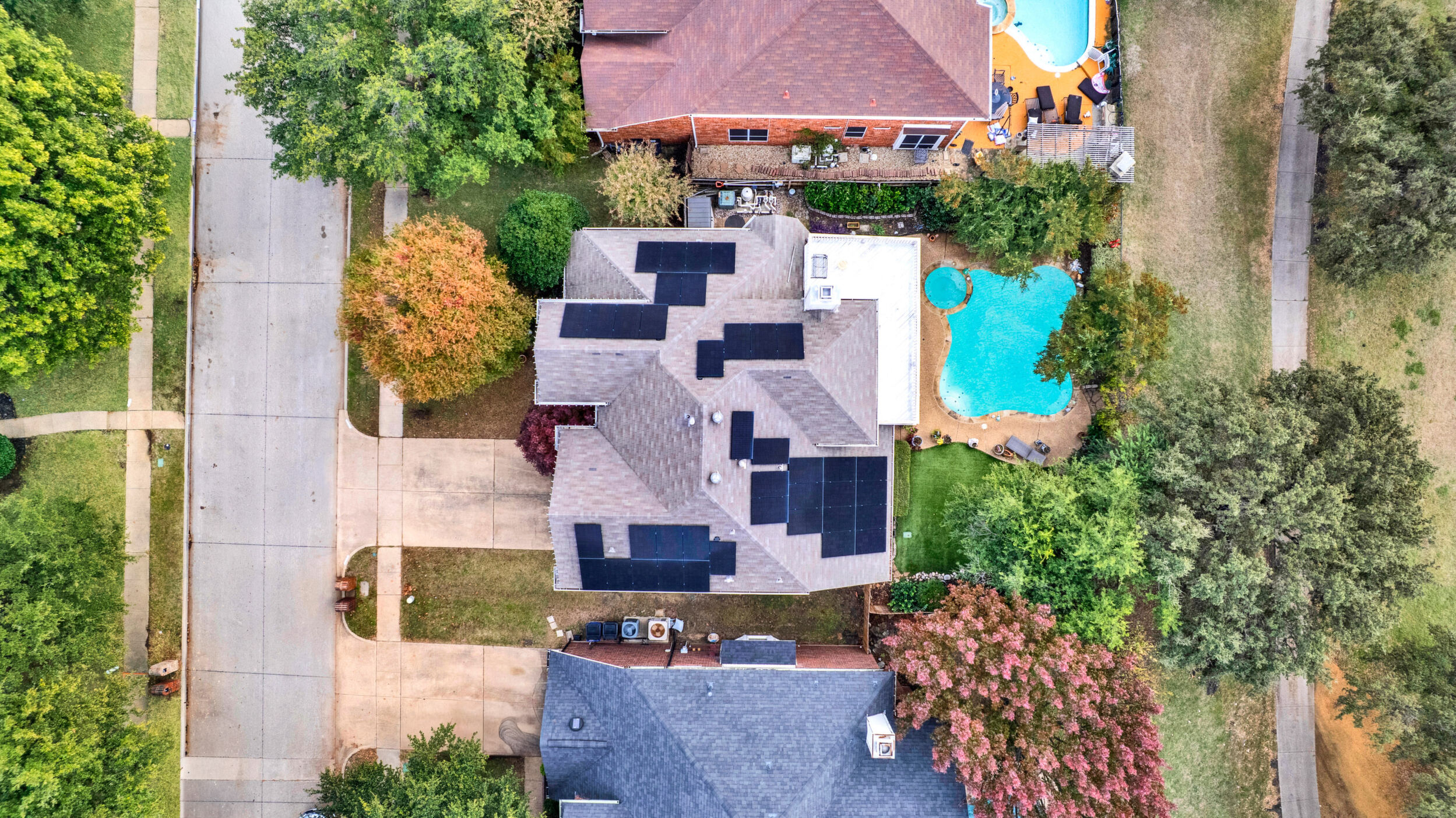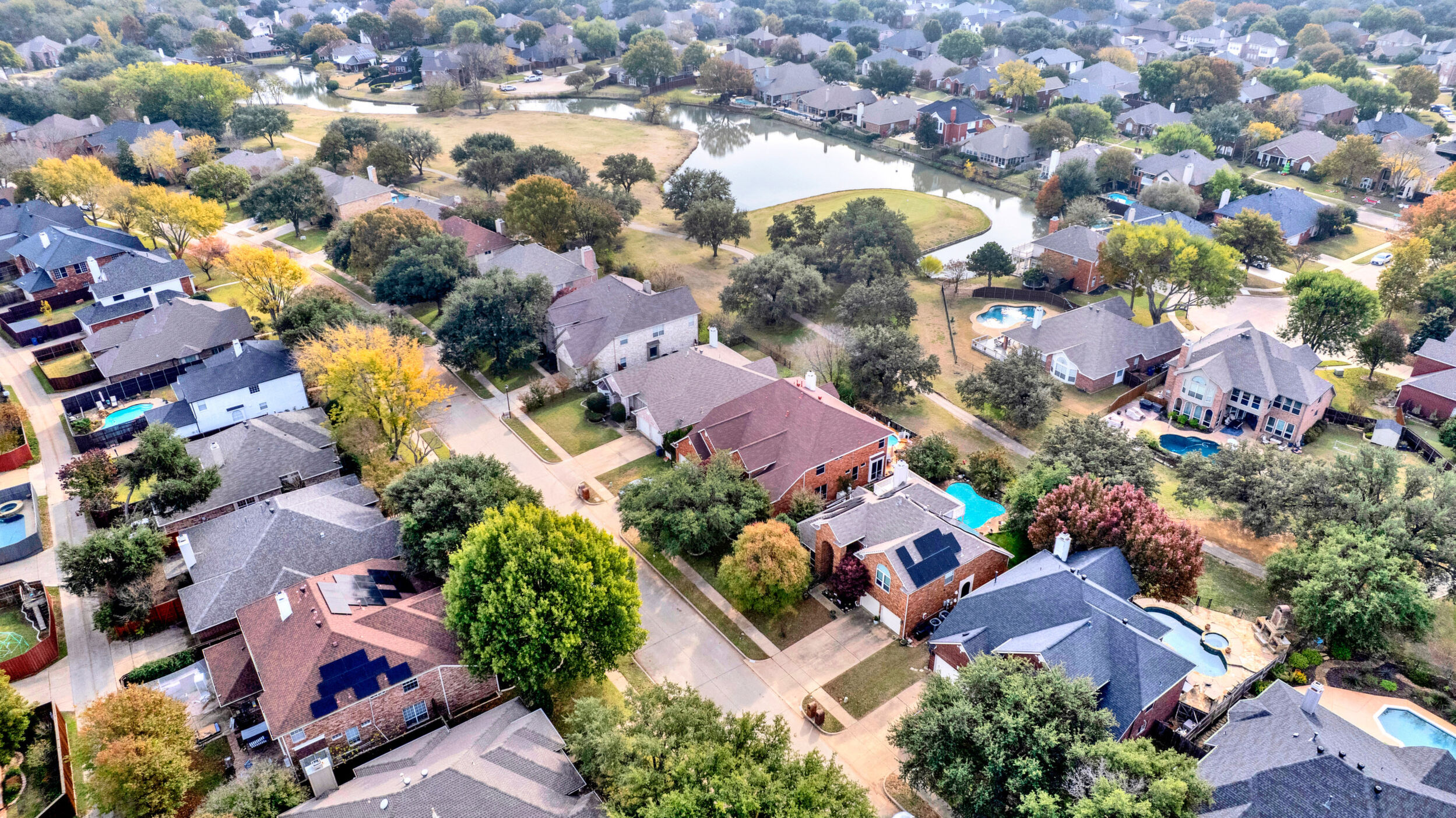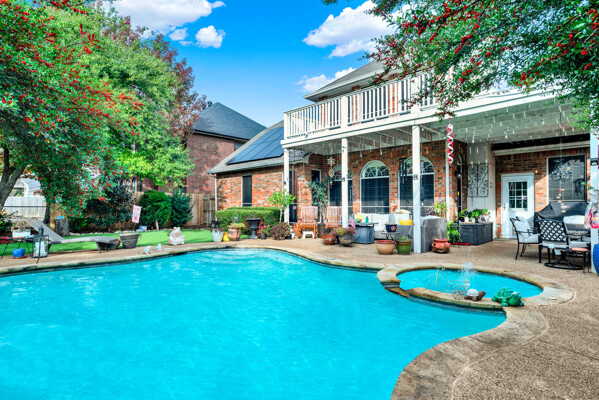Honey, stop the car! This two story gem has all the extra touches! Whether you love to entertain or you work from home, there is ample room for both. Walk into a foyer that looks straight back into a garden oasis and all the greatness in between! Stainless steel updated kitchen with great work flow, storage and appliances, featuring a beautiful ceiling mount draft unit. Kitchen is open to den that has gorgeous stacked stone floor to ceiling fireplace with hearth. Walk out to the landscaped golf course lot backyard with views of a refreshing waterfall pool, covered patio, and professionally installed pet turf. Large primary bedroom and ensuite bath is downstairs. Primary bath has a huge walk in shower, furniture quality cabinetry and dual sinks with walk in closet. Upstairs has three more bedrooms with dedicated updated bath, and a HIDDEN HUGE WALK IN CLOSET for holiday storage, toys, whatever you need it for! The open game room area is perfect for relaxation time and has a door out onto a large second story deck overlooking the gorgeous backyard. This home is located on the Frisco Farms Golf Course between holes 6 and 7. Great location for not getting those wayward golf balls in your backyard. Home has professionally installed leased solar panels for energy savings. Solar lease is assumable and warranty is transferable. The neighborhood has parks and playgrounds, elementary school within, and is close to restaurants, shopping and major highways. Refrigerator and washer and dryer are negotiable. Information provided is deemed reliable, but is not guaranteed and should be independently verified. Buyer and or Agent to verify measurements, schools, & tax, etc.