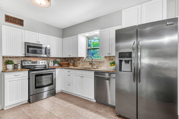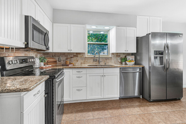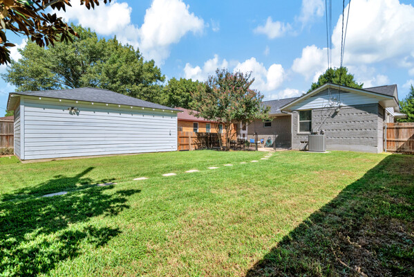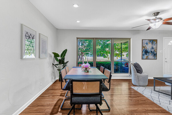 Picturesque mid-century home in the tranquil Lochwood subdivision near White Rock Lake. This beautifully maintained home features gorgeous wood flooring throughout and a wood accent wall in the living and dining areas that creates a stunning first impression. There is no carpet in the home. The kitchen offers abundant white cabinetry, granite countertops, a stone backsplash, stainless steel appliances, and a custom island with wine fridge, storage, and bar seating. Updates include electrical panel and breakers (2025), Low-E windows, updated lighting, high-efficiency HVAC (2020), roof replacement (2020), and a new garage door opener (2024). The home is gas-appliance compatible and includes a Ring security system. The spacious backyard with lush green grass and a newer fence is perfect for pets and entertaining. Walking distance to Lochwood Park with new pickleball courts, wooded trails, tennis courts, and multiple playgrounds. Convenient to the Dallas Arboretum, White Rock Lake, Lakewood, Lower Greenville, Casa Linda, and Lake Highlands for shopping and dining. Across from the brand-new Martha Turner Reilly Elementary School with security cameras that face the property, providing added neighborhood safety.
