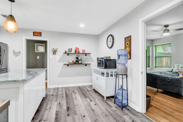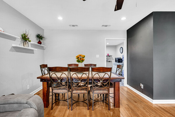 Welcome to 1201 W Avenue F, where modern updates meet timeless character on a beautifully shaded corner lot in the heart of Garland. This thoughtfully refreshed home is move-in ready, and all major systems have been recently updated, offering peace of mind and comfort for years to come. Step inside to discover the warmth and charm of the original hardwood floors, recently refinished to highlight their natural beauty. The living spaces feel bright and inviting thanks to new energy-efficient windows that fill the home with natural light. The kitchen and bathroom have been completely remodeled. They feature sleek countertops, updated cabinetry, and stylish fixtures. The kitchen is both functional and fresh, while the bathroom offers a clean, modern aesthetic. Enjoy your own outdoor retreat on the private patio, surrounded by mature shade trees that offer privacy and a peaceful vibe. The spacious corner lot provides plenty of yard space and an open, airy feel. This home is perfectly positioned just one block from the Garland Recreation Center and a beautiful city park, offering easy access to trails, sports courts, and community activities. Even better, its less than a mile from Downtown Garland, where the newly renovated city square features restaurants, shops, and local events, bringing small-town charm and big community energy right to your doorstep. With its blend of classic charm, modern upgrades, and an unbeatable location, 1201 W Avenue F is a rare find. Schedule your showing today and come see what makes this home so special!