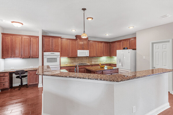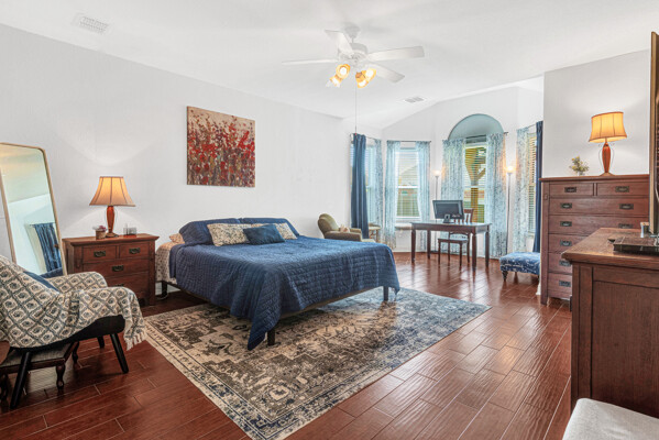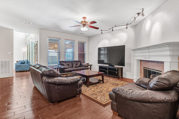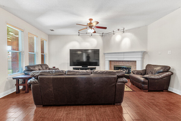 This gorgeous & updated 5-bedroom beauty has it all in sought-after Turnbridge Manor to include a beautifully remodeled primary bath, a sprawling & expansive floorplan, updated secondary baths, a guest suite down & is located just a short walk from Taychas Trail. Upgrades & features are...hardwood-style ceramic tile, neutral tones, an elegant formal living with a double mantle, a gourmet kitchen featuring a huge island with upgraded granite, two walk-in pantries, Bosch DW, a planning desk, abundant cabinetry, gas cooktop, double oven & is open to a large family room with a gas FP. The primary suite is split with a sitting area and remodeled bath with quartz furniture style vanities, modern tile, a frameless glass shower and huge WIC. Also includes a private guest suite down with updated bath & outdoors features a Texas-sized covered patio & large yard enclosed by a BOB fence. The 2nd floor has a spacious gameroom for play with an adjacent media room with projection system for movie nights. There are 3 other bedrooms upstairs all with WICS and updated baths with quartz counters. Also includes...most windows upgraded to vinyl in 2019, Upgraded HVAC, 3-car garage with shelving & cabs, attic storage by guest room, utility room cabs & storage, 30-year roof (2023), upgraded carpet (2022) & see Upgrades List for more. This home is move-in ready & is served by A-Rated Frisco schools all within walking distance. Priced to sell and excellent value! #realtytown3