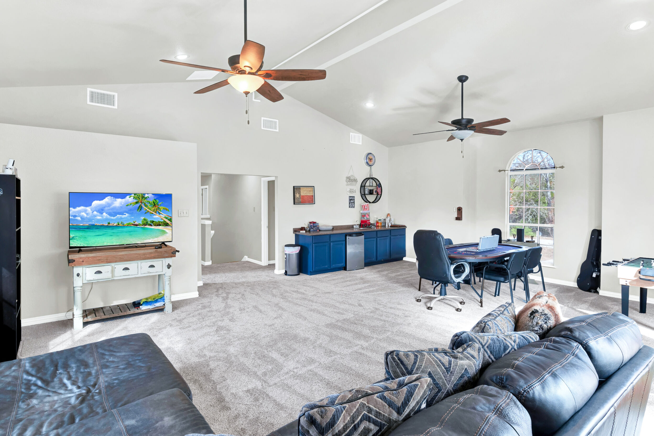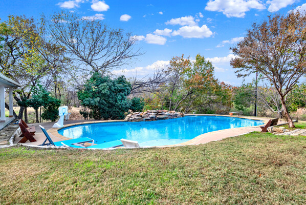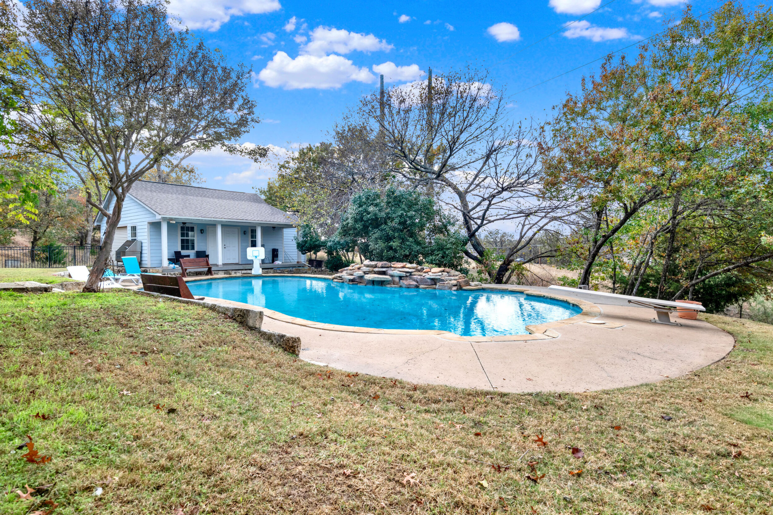 Tucked away on 4.5 private acres, 152 Valley View Court offers a rare blend of modern luxury and peaceful country living just minutes from Fort Worth. This recently renovated estate sits at the end of a quiet cul-de-sac surrounded by mature trees and wide-open space, creating the perfect retreat from city life. Step inside to discover light-filled interiors featuring new flooring, fresh paint, a fully updated kitchen with sleek finishes, and elegant touches throughout. French doors open to a private office with a hidden safe room cleverly concealed behind custom built-ins a truly distinctive feature. The inviting living room showcases beautiful views of the property and a cozy fireplace, while the expansive upstairs family room offers endless possibilities for entertainment and relaxation. The primary suite is a true sanctuary, featuring a luxurious ensuite with custom tilework and a soaking tub designed for ultimate comfort. Outdoors, your own resort-style haven awaits. Enjoy a sparkling oversized diving pool with a new pump and filter system, easily convertible to saltwater, surrounded by an expansive covered patio ideal for gatherings. The finished, air-conditioned pool house adds even more versatility perfect for guests, a home studio, or fitness space. Just minutes from I-20 and US-377, this exceptional property provides easy access to downtown Fort Worth, Weatherford, and the shopping and dining of Willow Park North. With space to breathe, room to grow, and the convenience of city amenities nearby, 152 Valley View Court offers a lifestyle of serenity, sophistication, and endless possibility.