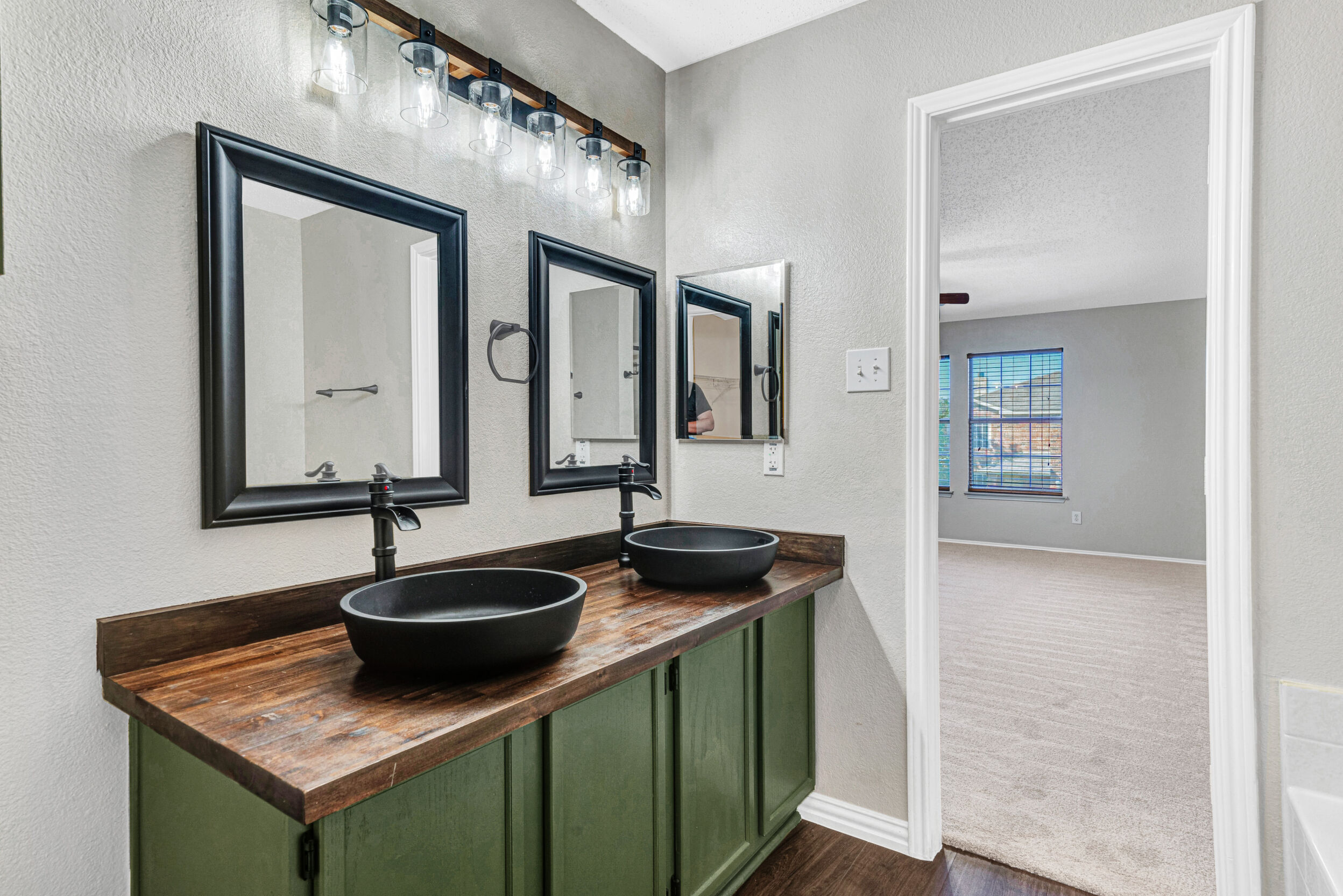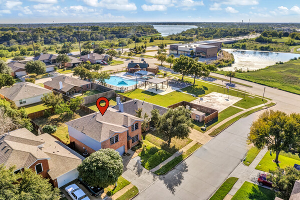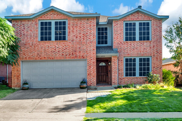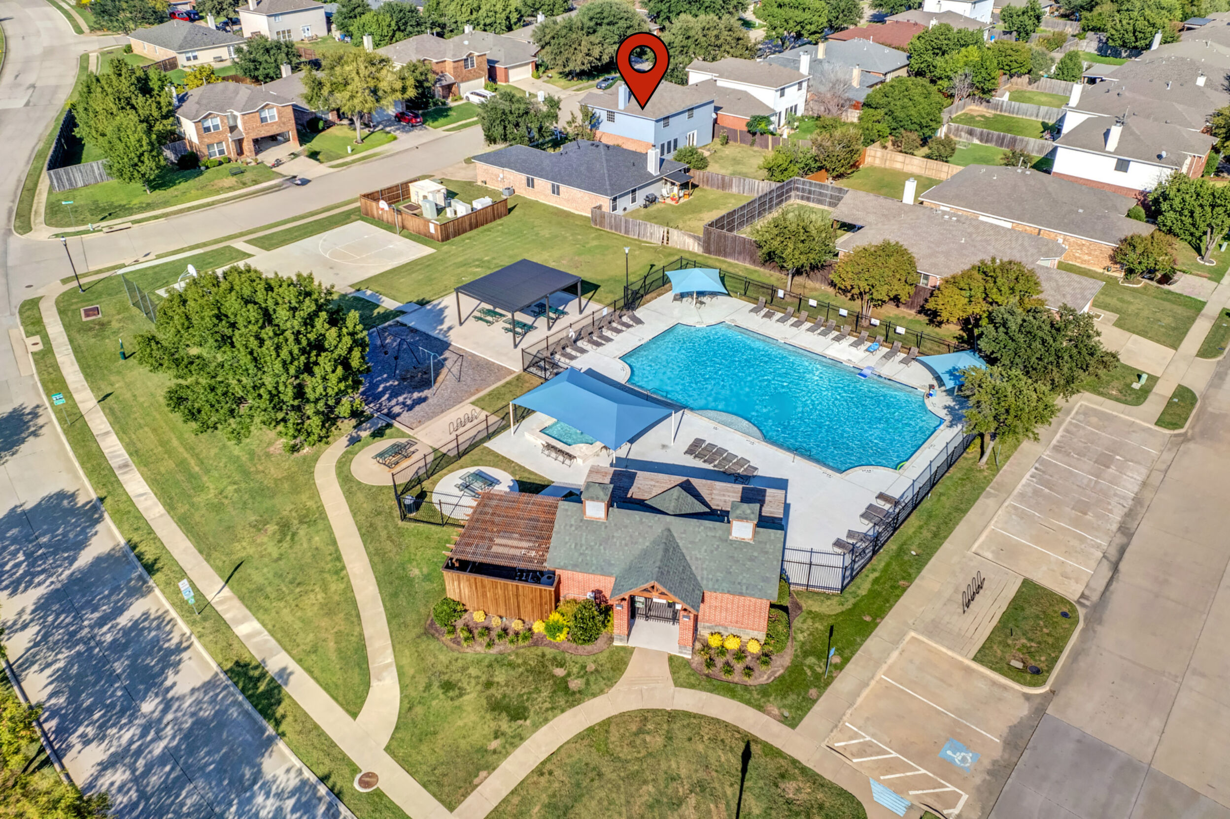 MOVE-IN READY & BEAUTIFULLY UPDATED! This beautifully refreshed two-story home in Wynfield Farms offers 3 bedrooms, 2.5 baths, plus a downstairs office that can serve as a 4th bedroom. Recent upgrades include fresh paint, luxury vinyl floors, new carpet upstairs, updated light fixtures, renovated kitchen with painted cabinets, backsplash & redesigned island, updated bathrooms, and brand-new French doors to the backyard. The open floor plan connects the living room with fireplace, dining, and kitchenperfect for entertaining. Upstairs features all bedrooms plus a versatile game room and sunset views from the stairway window. The large backyard boasts two mature peach trees and plenty of space to play or relax. Located on a quiet street near the community pool, playground, Lake Lewisville, schools, shopping, and diningthis home is the perfect blend of comfort, convenience, and style!