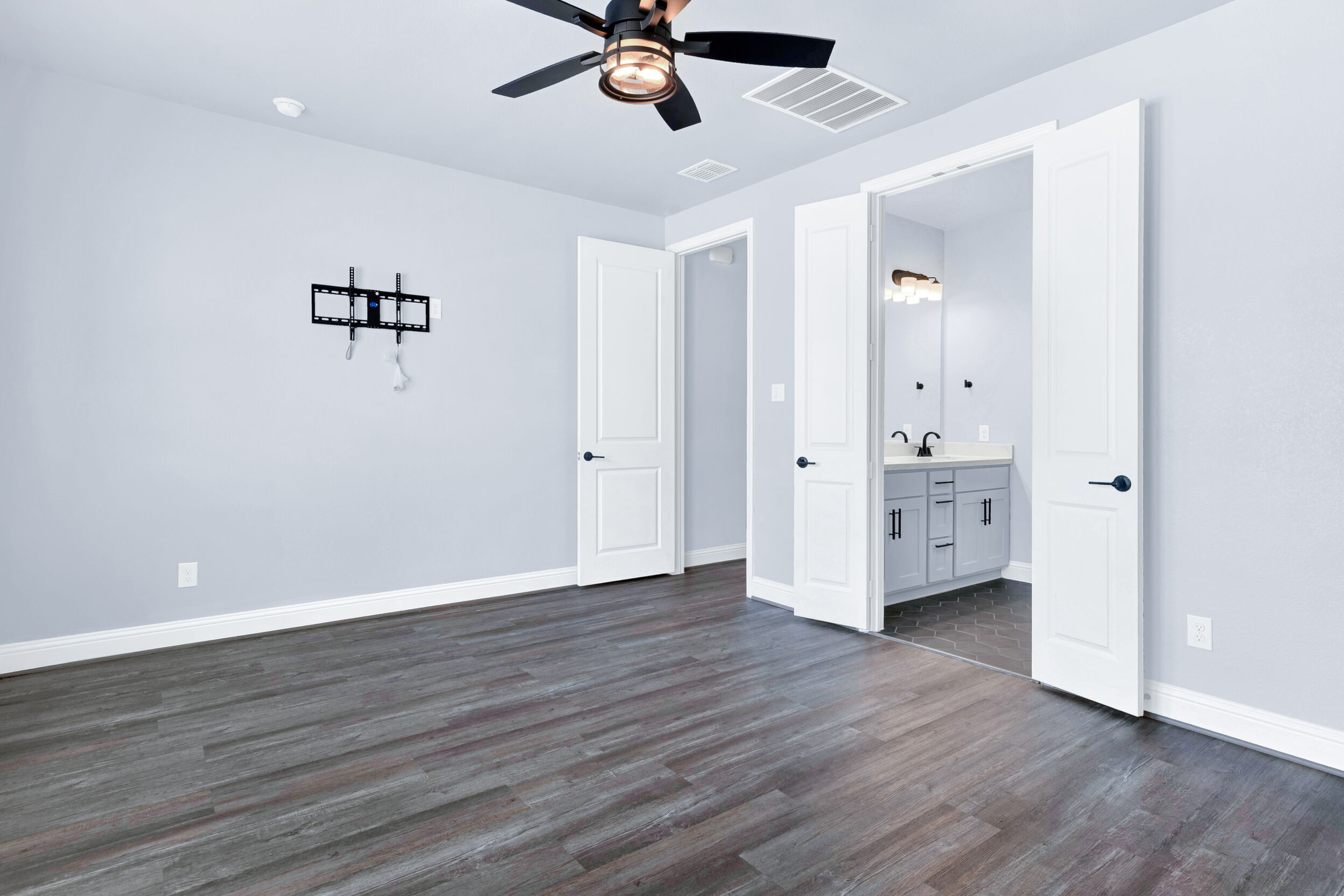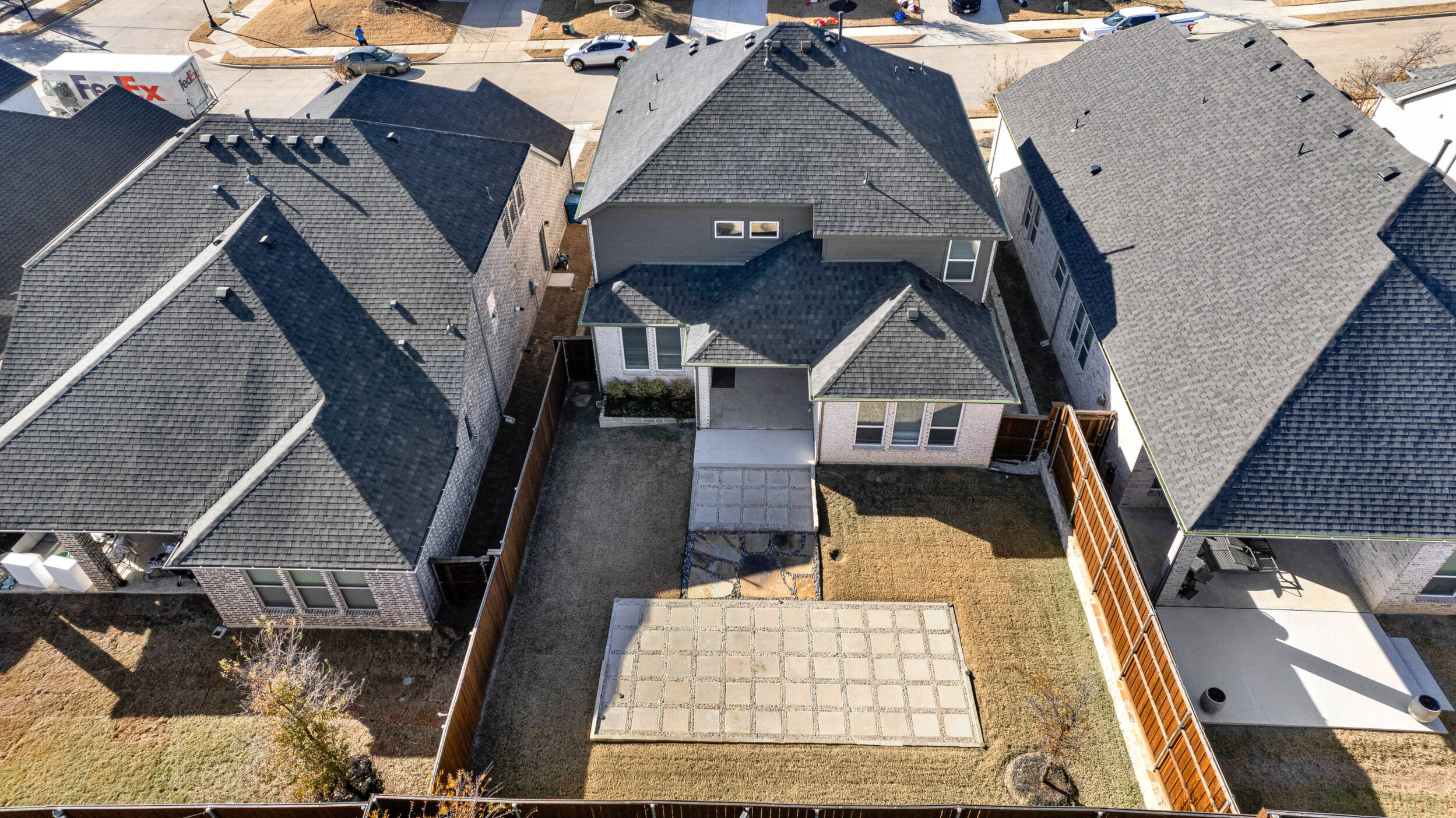 Upgrades throughout! This custom-designed home offers a refined blend of modern style, thoughtful upgrades, and a layout designed for both family living and entertaining. From the moment you step inside, soaring ceilings, sleek iron balusters, and an open, airy floor plan create an immediate sense of space and sophistication. The main level features hard-surface flooring throughout with no carpet, while upgraded carpeting adds comfort upstairs. The heart of the home is the stunning kitchen, anchored by a massive island, dramatic black backsplash, and expansive counter space ideal for hosting, cooking, or casual gatherings. Clean lines and elevated finishes continue throughout the home, reflecting upgrades at every turn. The flexible floor plan includes four spacious bedrooms, three and a half bathrooms, a private study, and a large upstairs game room perfect for movie nights or relaxed entertaining. The primary suite, located on the main level, serves as a true retreat with spa-inspired finishes, an extended walk-in shower, distinctive hexagonal tile, and a custom-designed closet with smart storage solutions. Outdoor living is just as inviting, with a generous backyard featuring a covered patio and extended concrete pad ideal for entertaining or unwinding in the evening. The home sits on a quiet interior lot in a friendly, attentive neighborhood, just minutes from the lake where beautiful sunsets set the backdrop for everyday life. Residents enjoy outstanding community amenities, including a community center with game room, study rooms, fitness center, pool, event space, and a stocked fishing pond. With nearby trails, parks, outdoor recreation, local shops, dining, and a short drive to lakeside activities and the beach, this location balances tranquility with convenience. Zoned to award-winning Little Elm ISD, this home offers an exceptional lifestyle in a highly desirable setting. Call TODAY!