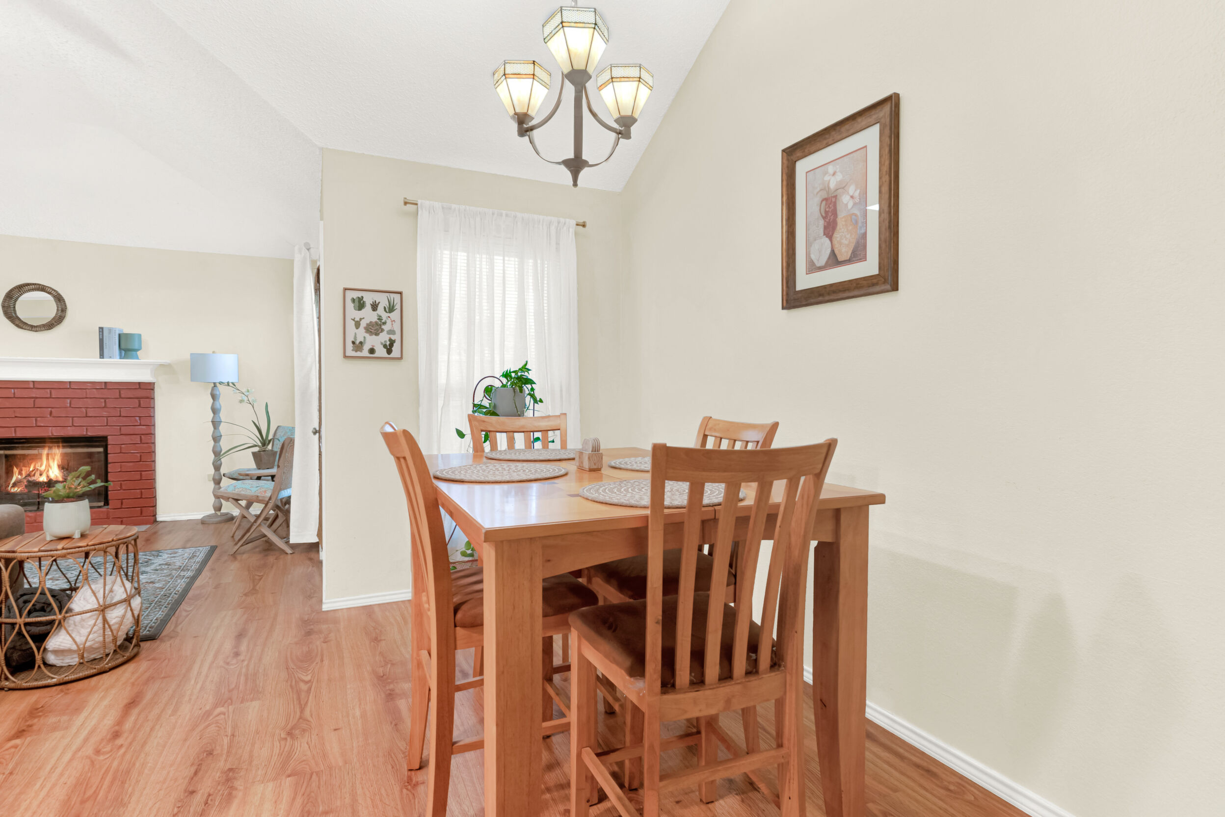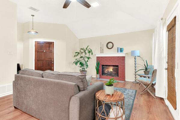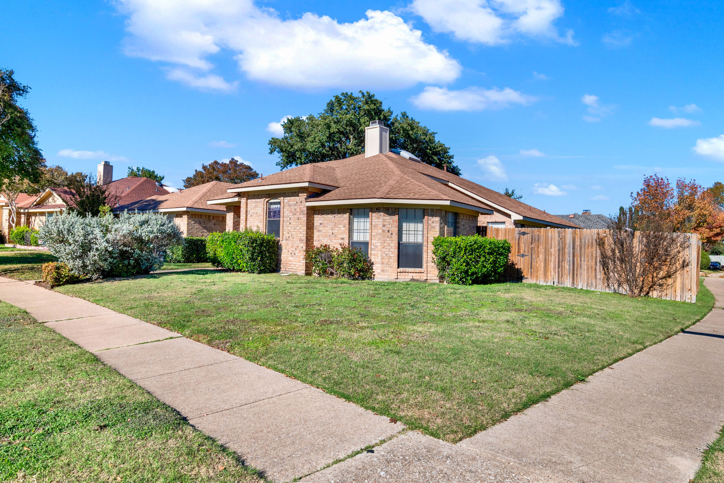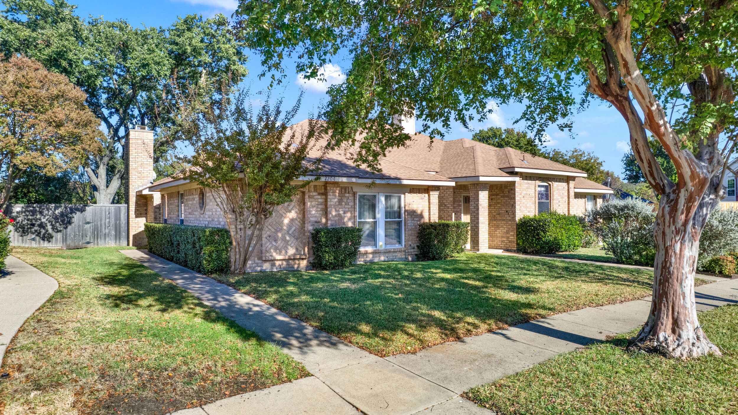 Vintage glam blends beautifully with classic charm in this beautifully maintained 3-bedroom, 2-bath, single-story half duplex located in the desirable Oakridge subdivision of Garland. This home offers a warm blend of character and modern convenience with sunlit living spaces, laminate flooring in the main living areas, ceramic tile in the kitchen and baths, and carpet in the bedrooms. The spacious living room features rich textures and a comfortable layout perfect for daily living or entertaining. The kitchen includes a breakfast bar, pantry space, abundant cabinetry, and all-new appliances including a range, microwave, and dishwasher. The washer and dryer may remain with the home. The primary suite features a walk-in closet and timeless finishes, while the secondary bedrooms offer generous space and natural light. A charming, private backyard with a patio and mature landscaping creates a peaceful retreat ideal for relaxing or hosting small gatherings. For added peace of mind, the home includes Ring security floodlight cameras at both the front and back entrances. Recent updates include a new range, microwave, and dishwasher; attic insulation added and HVAC ducts replaced in June 2025; fireplace cleaned and inspected in October 2025; electrical breakers replaced in November 2025; and an HVAC tune-up completed in Summer 2025. This home is centrally located near Duck Creek Golf Club, Firewheel Town Center, parks, trails, shopping, dining, and major commuting routes. Enjoy the tranquility of a well-established community with convenient access to everything Garland has to offer.