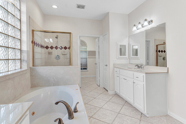Beautiful brick home in Planos sought-after Creekside Estates! Nestled in an established neighborhood with mature trees and zoned to award-winning Plano ISD, this move-in ready home combines timeless charm, thoughtful design, and modern updateswith no HOA. Step inside to find ceramic tile floors that mimic natural stone, creating a sophisticated and durable foundation. The centrally located living room features a two-sided fireplace that opens to the eat-in kitchenperfect for family gatherings and entertaining. The spacious primary suite on the main level boasts tall ceilings, backyard views, and a luxurious ensuite bath with double vanities, a garden tub, and a separate shower. A formal dining room, den, and laundry room add convenience and flexibility. Upstairs offers three secondary bedrooms, including a Jack-and-Jill layout, plus a game room and a finished attic ideal for storage or a playroom. Outside, enjoy a fenced patio and expansive yard, offering a peaceful space to relax. Recent updatesincluding new paint, carpet, roof, AC system, and garage doorensure true move-in readiness. Ideally located on a quiet interior lot near Cottonwood Creek Greenbelt, with quick access to PGBT, Hwy 75, shopping, and dining, this home perfectly balances comfort, location, and value.