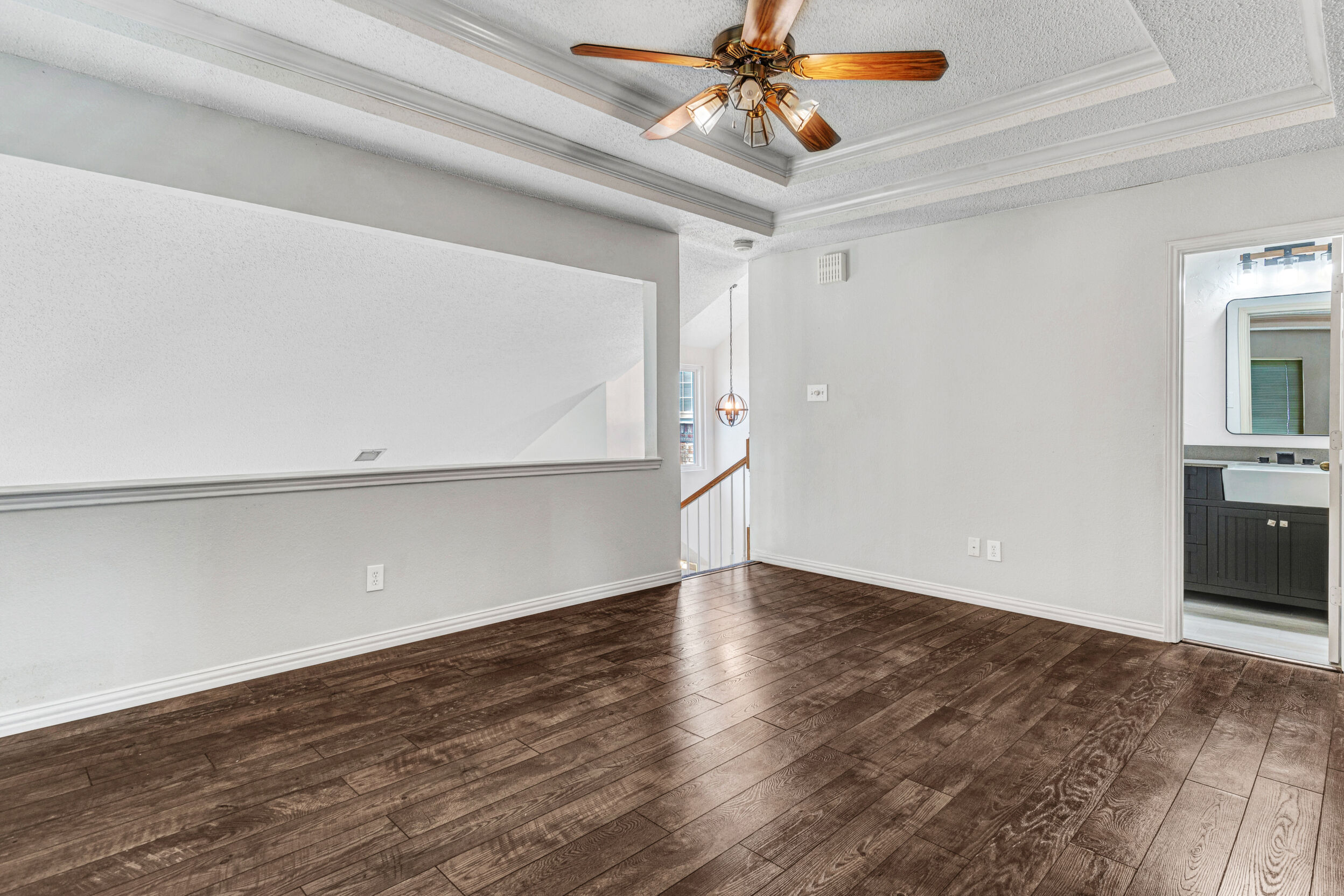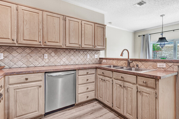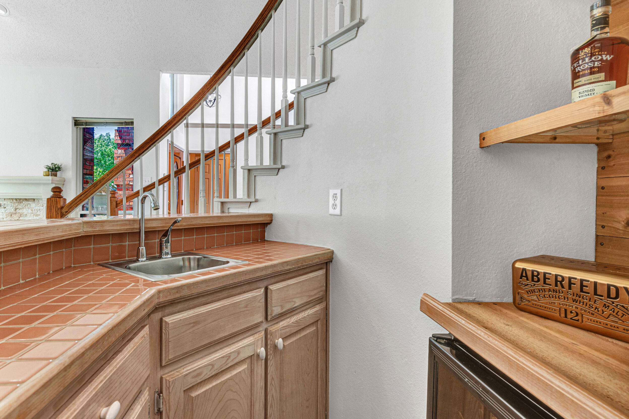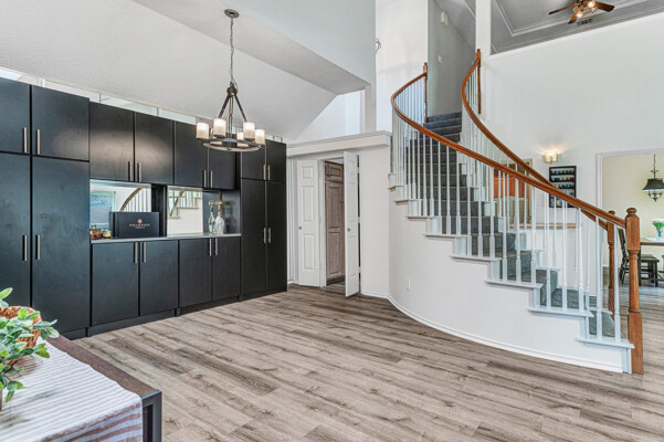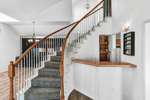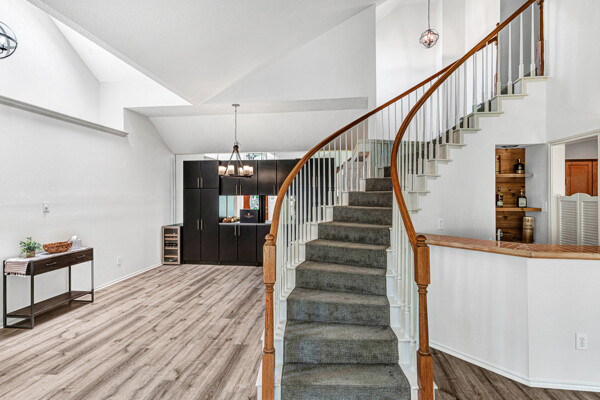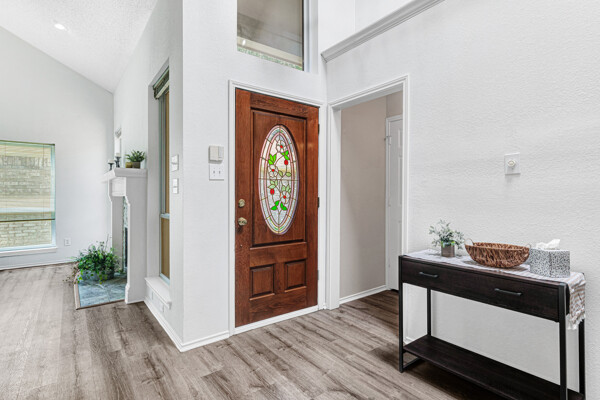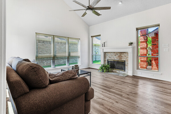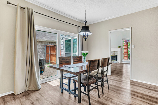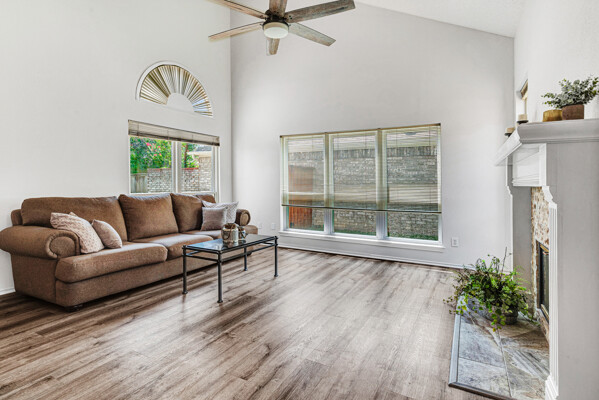 Beautifully updated and move-in ready home in Richardson, zoned to Plano ISD! This light-filled floor plan features soaring 18-ft vaulted ceilings, a stacked stone fireplace, luxury vinyl plank flooring, and a curved staircase. The kitchen offers granite countertops, pantry, breakfast bar, and dining area with sliding doors to a private patio. First-floor primary suite includes a renovated bath with quartz counters, ultra-clear glass shower, soaking tub, and walk-in closet. Upstairs: two bedrooms, updated full bath, and a loft-style second living area. Two large attic spaces provide extra storage. Smart and energy-efficient upgrades: Rachio sprinkler system, Lennox 20 SEER zoned HVAC, Hardie siding, Class 3 roof, and storage shed. HOA maintains front yard and includes community pool, hot tub, and clubhouse. Prime location near PGBT, I-75, 635, Sherrill Park Golf Course, DART rail, and CityLine shopping and dining.