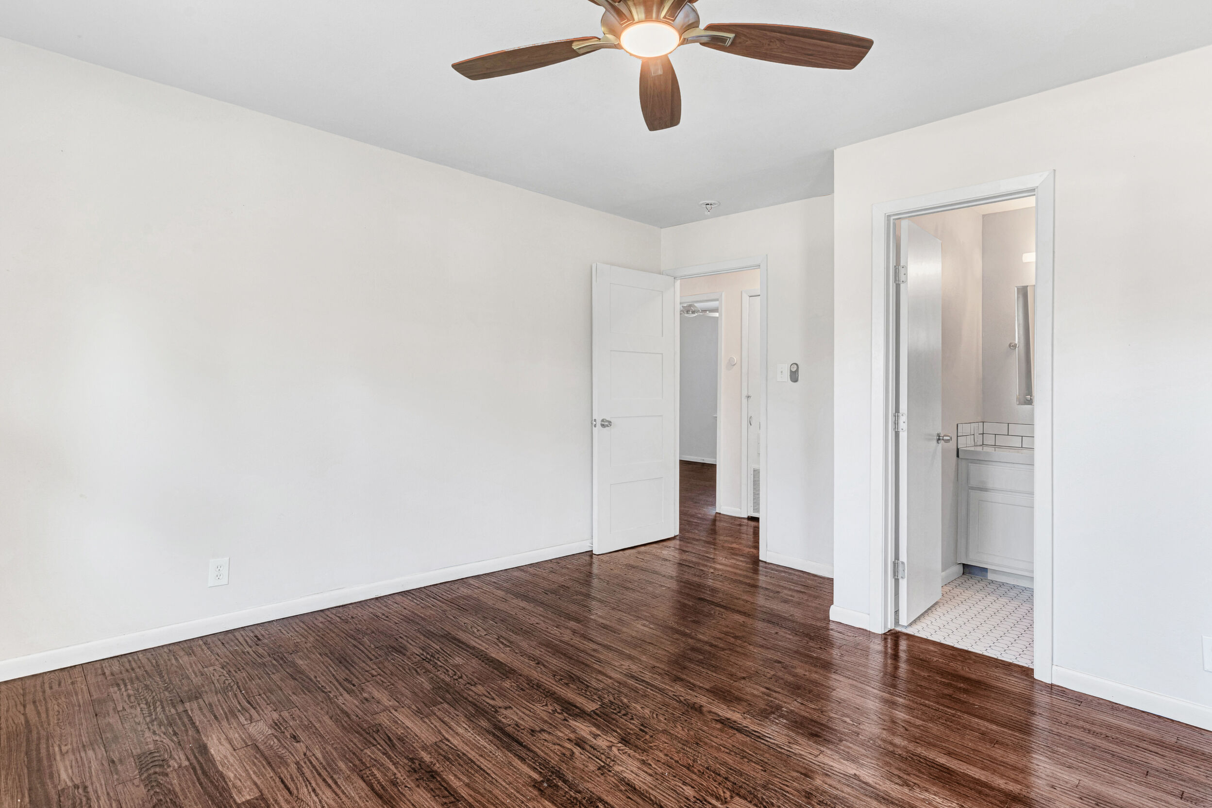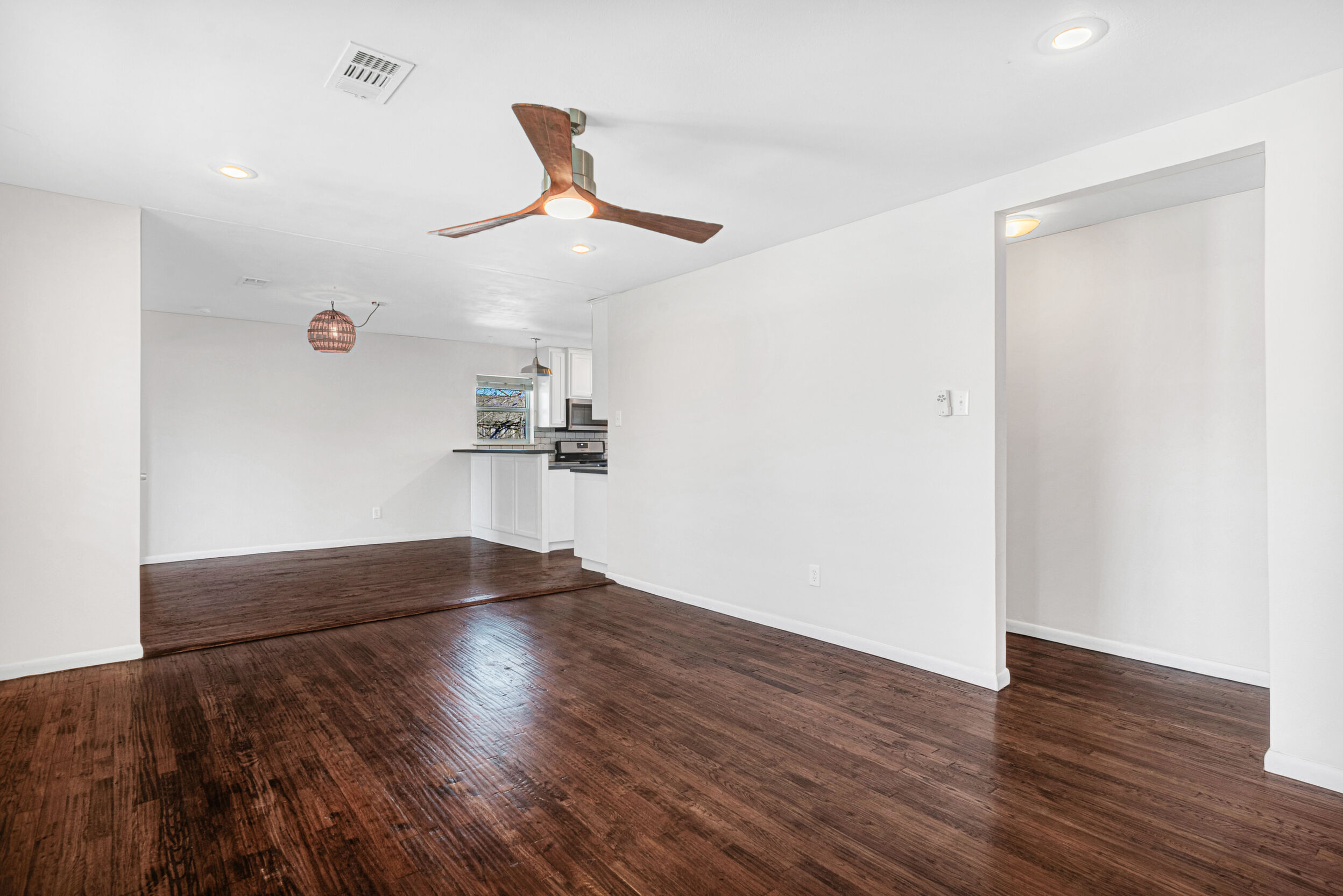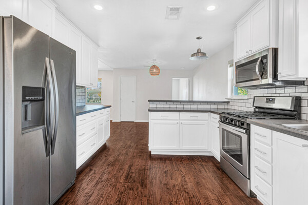 305 Renfro St showcases a completely remodeled Mid Century Modern gem in downtown Rockwall, set on an oversized lot with stylish xeriscape landscaping that keeps curb appeal high and maintenance low. A new roof, new windows and doors, and fresh insulation add peace of mind, while the updated exterior presentation pairs perfectly with the homes clean modern lines. An inviting outside deck extends the living space, offering a perfect setting for outdoor dining, relaxing, or hosting gatherings beneath the Texas sky. Inside, the open floor plan feels bright and effortless, anchored by hand scraped hardwood floors that run throughout for a warm, cohesive look. The kitchen and bathrooms have been elevated with new tile, new custom cabinets, and stainless steel appliances, creating a crisp, contemporary feel designed for both everyday living and entertaining. Thoughtful upgrades continue with new custom vanities and a frameless glass shower in the primary en suite, delivering a spa-inspired touch with modern finishes. Behind the scenes, all new electric, all new plumbing, and comprehensive updates throughout make this home as practical as it is beautiful. The location is just as compelling, offering the rare convenience of being within walking distance of Harry Myers Park and the downtown square, where dining, events, and local favorites are close at hand. This is a move-in ready opportunity to enjoy modern design, major improvements, and a vibrant downtown lifestyle in one of Rockwalls most desirable areas.