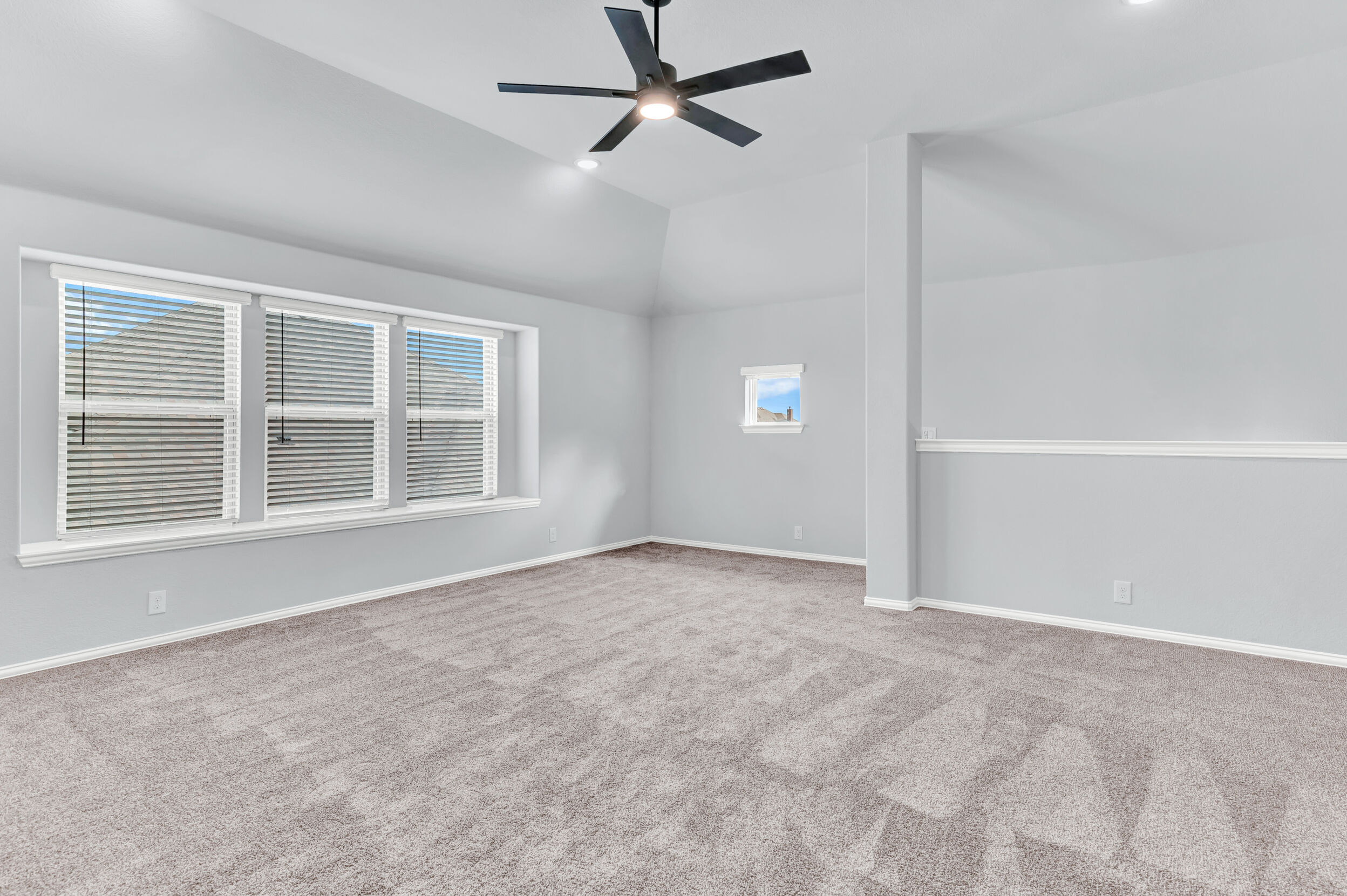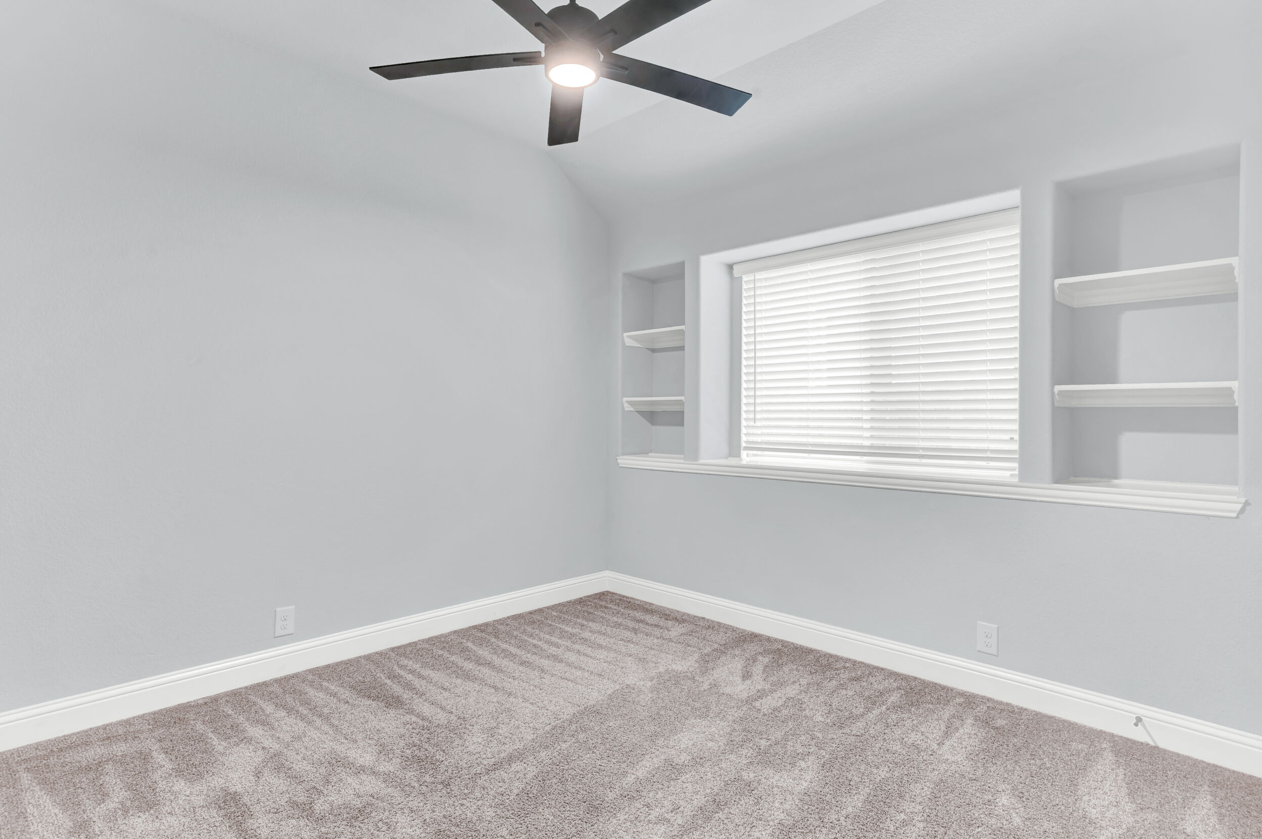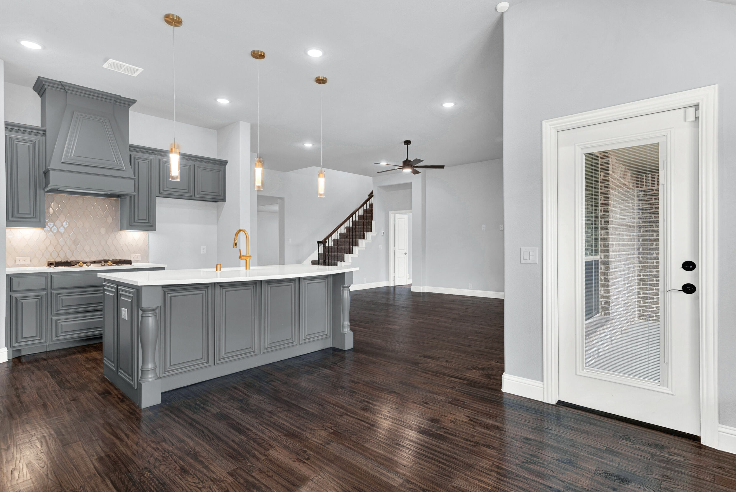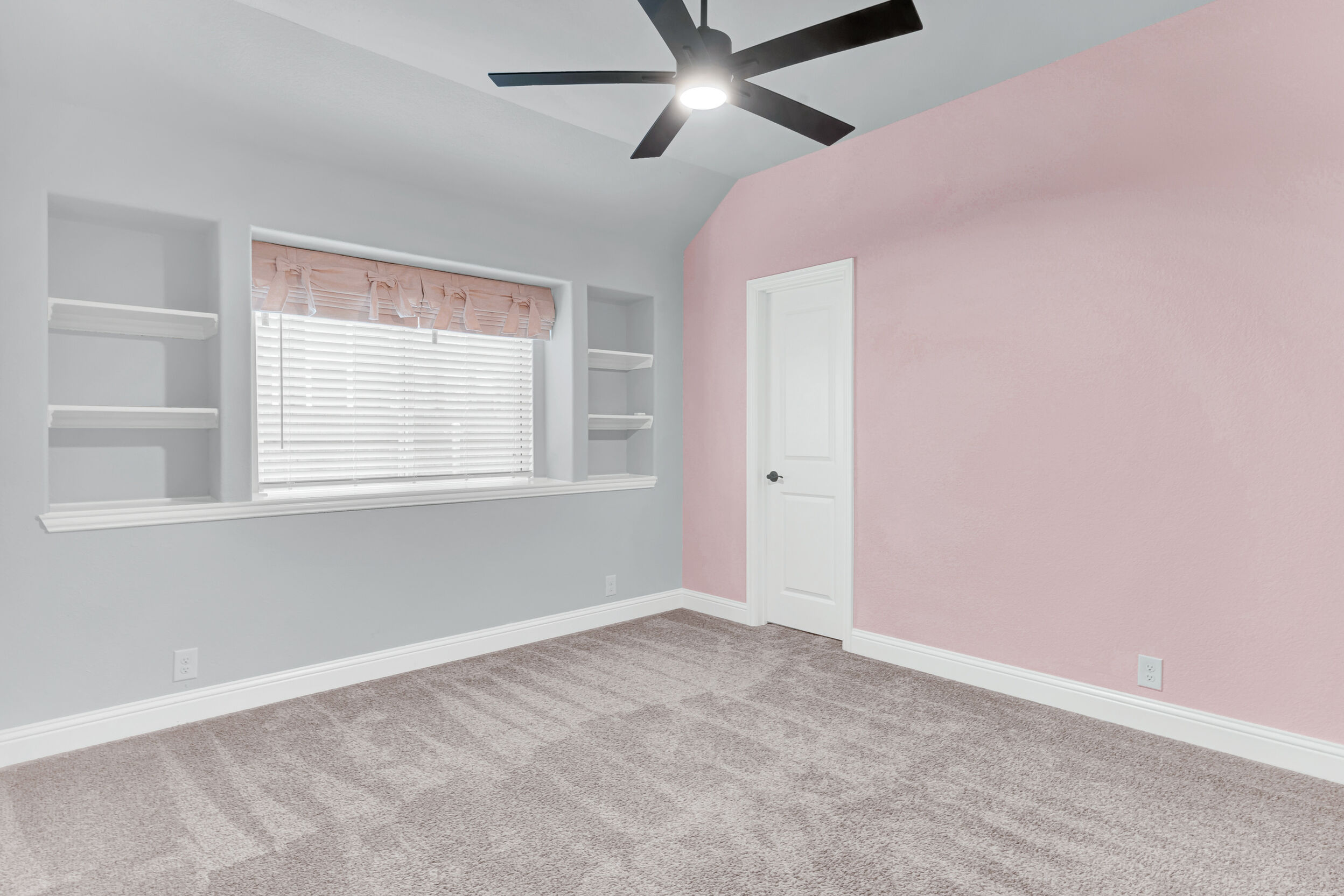 Enjoy the look and feel of a brand-new home without the wait or the new-construction price. Built in 2023 and impeccably maintained, this stunning two-story residence blends modern design, premium finishes, and a highly functional layout ideal for everyday living and entertaining. The architecturally pleasing stone and brick exterior makes a strong first impression, complemented by an 8-foot custom front door and cedar garage door. Inside, site-finished hardwood floors, a stacked stone direct-vent fireplace, and thoughtfully selected upgrades set the tone for a polished yet welcoming interior. Multiple bedrooms on the main level provide flexibility, while dedicated spaces including a private study, formal dining room, game room, and media room ensure room for work, play, and relaxation. The well-appointed kitchen is designed to impress, featuring quartz countertops, a large island workspace, gas cooktop, wood vent hood, pot-and-pan drawers, and a built-in microwave and oven tower that opens to an adjacent breakfast nook. The open floor plan design connects the kitchen to the main living areas, creating a natural flow for gatherings both large and small. Privately situated on the main level, the spacious primary suite offers over 300 square feet of comfort. The luxury ensuite bath includes a drop-in deck-mounted tub, separate shower, granite surfaces, and a generous walk-in closet. An extended covered patio expands the living space outdoors, while the 2-car garage provides ample room for vehicles and seasonal storage. Located in the sought-after Ridge Ranch community, residents enjoy resort-style amenities including pools, parks, trails, and playgrounds. Thoughtful safety features, energy-efficient construction, and move-in-ready condition make this home an exceptional value in a thriving neighborhoodoffering all the benefits of new construction, already perfected.