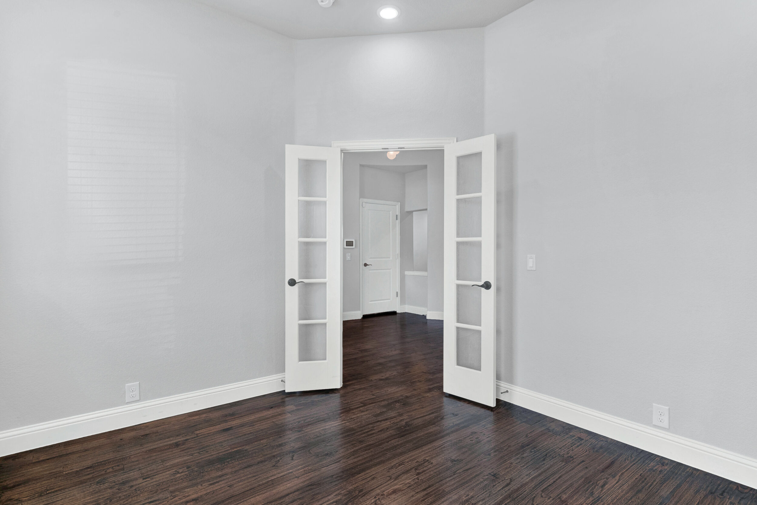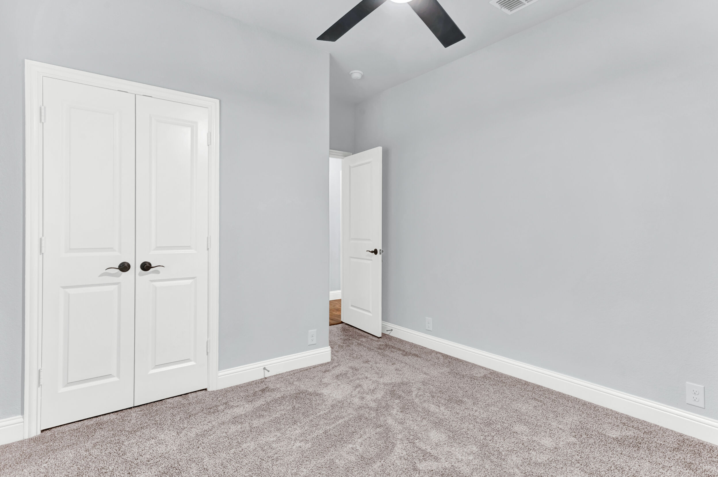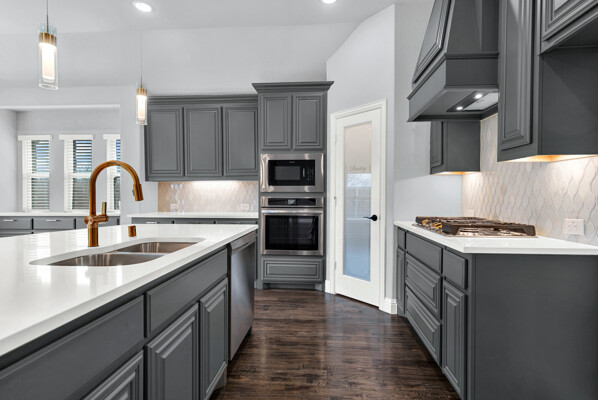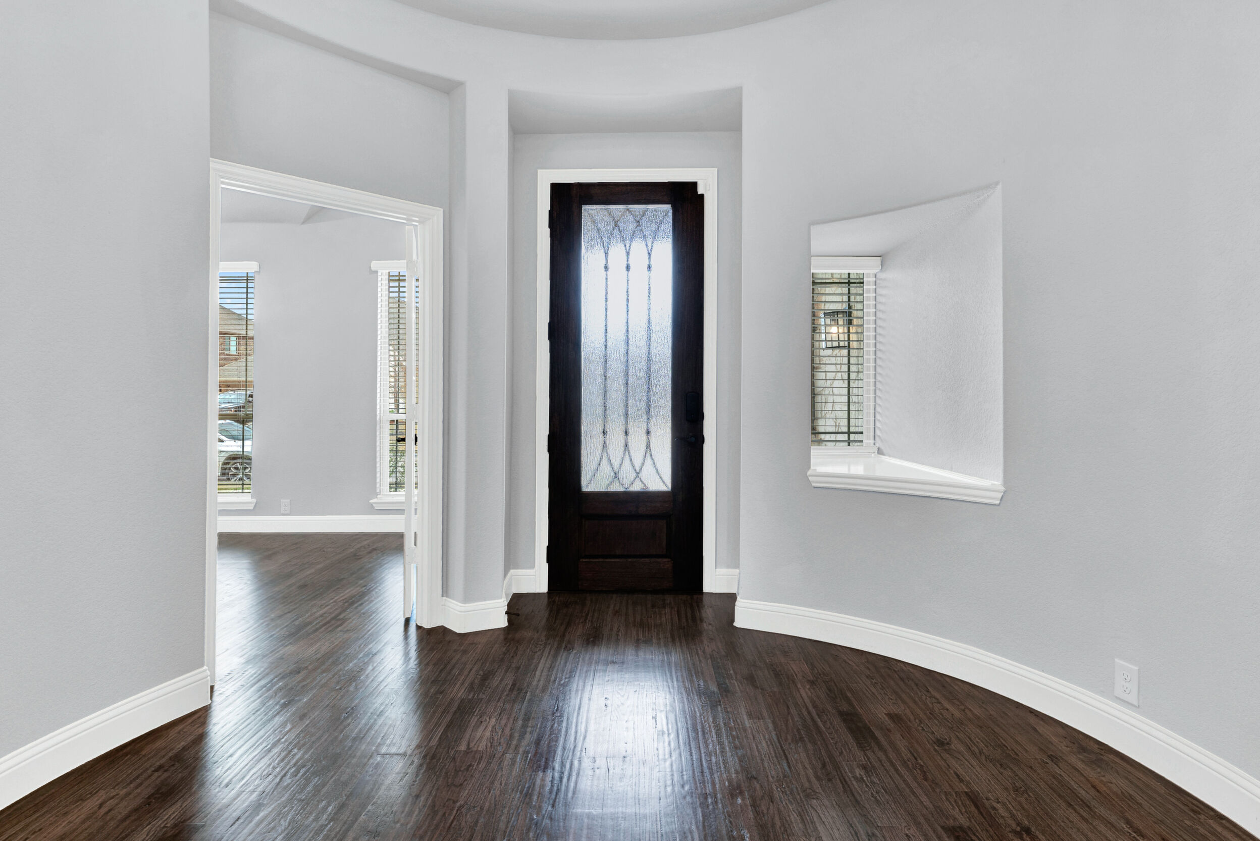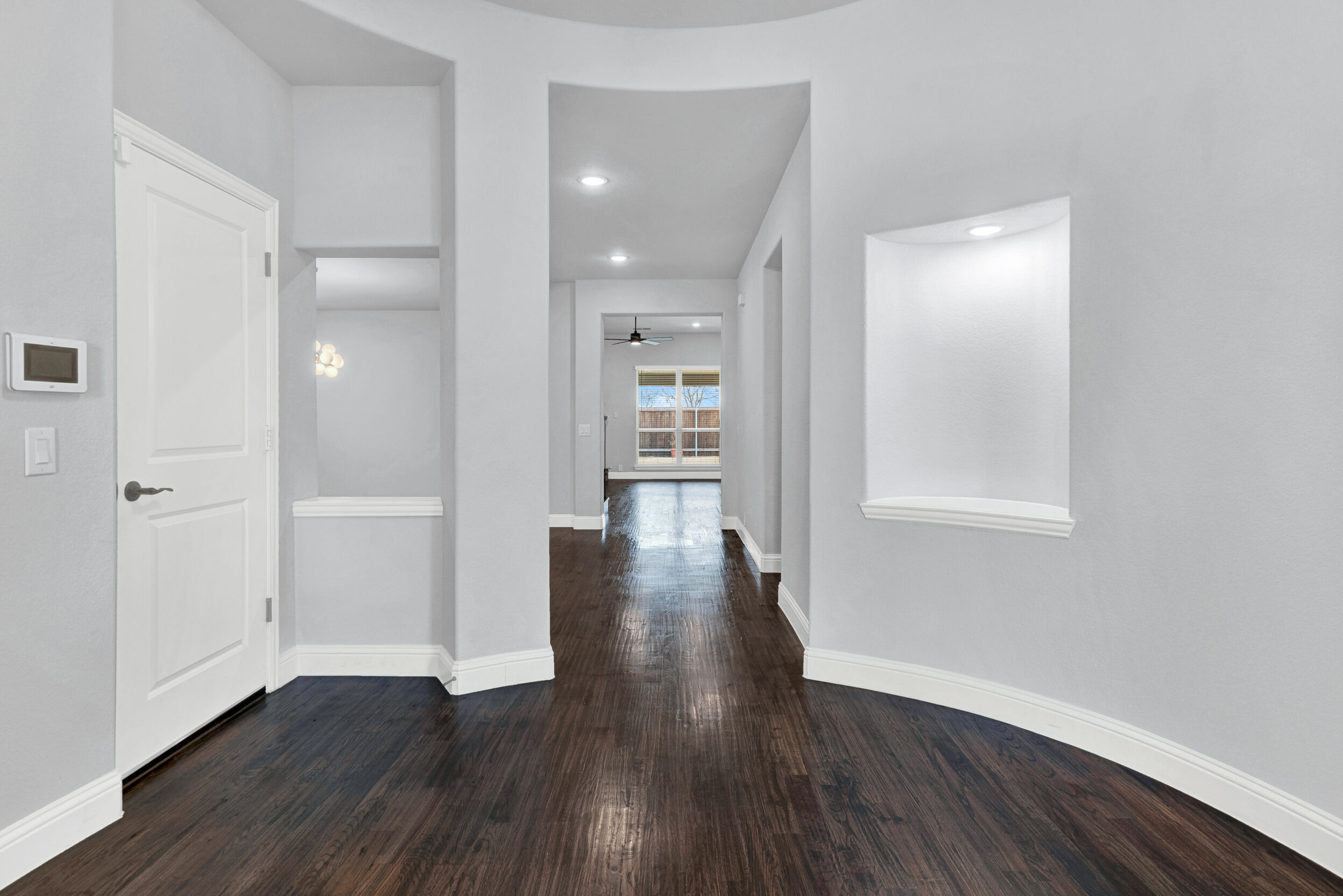 Enjoy the look and feel of a brand-new home without the wait or the new-construction price. Built in 2023 and impeccably maintained, this stunning two-story residence blends modern design, premium finishes, and a highly functional layout ideal for everyday living and entertaining. The architecturally pleasing stone and brick exterior makes a strong first impression, complemented by an 8-foot custom front door and cedar garage door. Inside, site-finished hardwood floors, a stacked stone direct-vent fireplace, and thoughtfully selected upgrades set the tone for a polished yet welcoming interior. Multiple bedrooms on the main level provide flexibility, while dedicated spaces including a private study, formal dining room, game room, and media room ensure room for work, play, and relaxation. The well-appointed kitchen is designed to impress, featuring quartz countertops, a large island workspace, gas cooktop, wood vent hood, pot-and-pan drawers, and a built-in microwave and oven tower that opens to an adjacent breakfast nook. The open floor plan design connects the kitchen to the main living areas, creating a natural flow for gatherings both large and small. Privately situated on the main level, the spacious primary suite offers over 300 square feet of comfort. The luxury ensuite bath includes a drop-in deck-mounted tub, separate shower, granite surfaces, and a generous walk-in closet. An extended covered patio expands the living space outdoors, while the 2-car garage provides ample room for vehicles and seasonal storage. Located in the sought-after Ridge Ranch community, residents enjoy resort-style amenities including pools, parks, trails, and playgrounds. Thoughtful safety features, energy-efficient construction, and move-in-ready condition make this home an exceptional value in a thriving neighborhoodoffering all the benefits of new construction, already perfected.