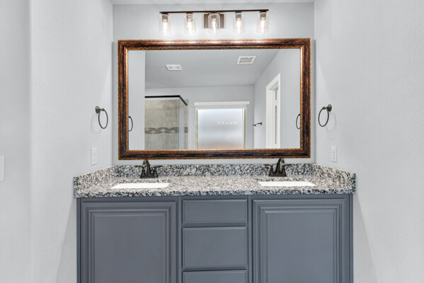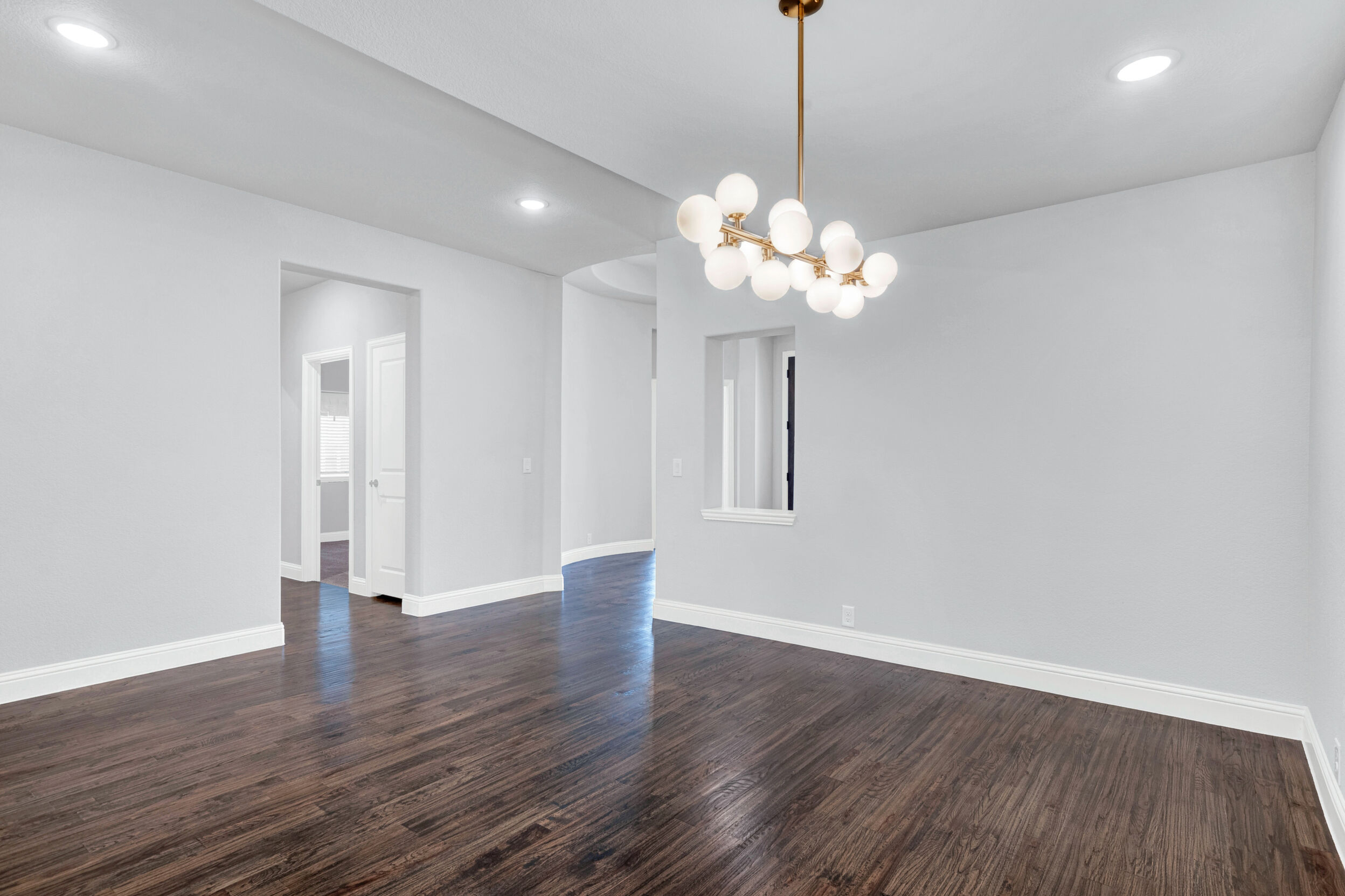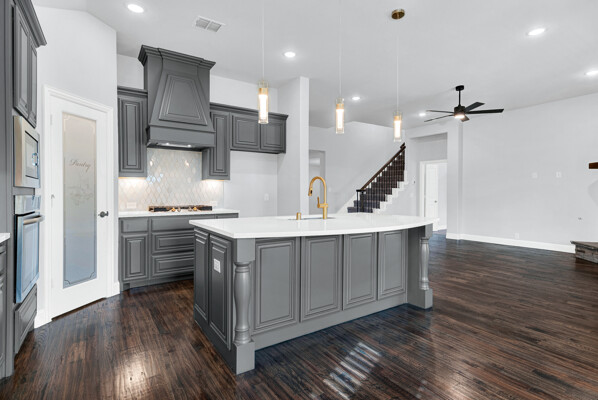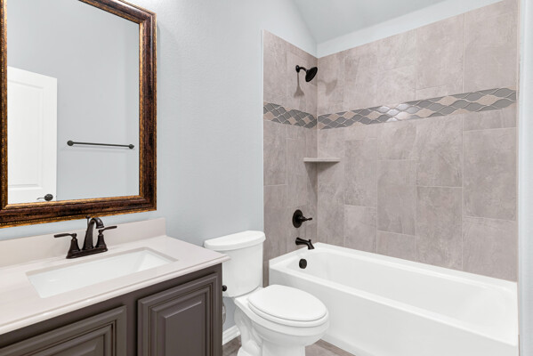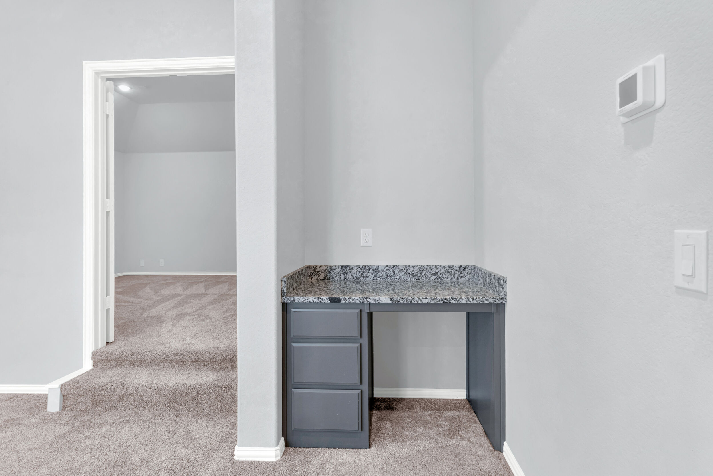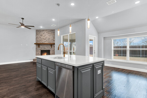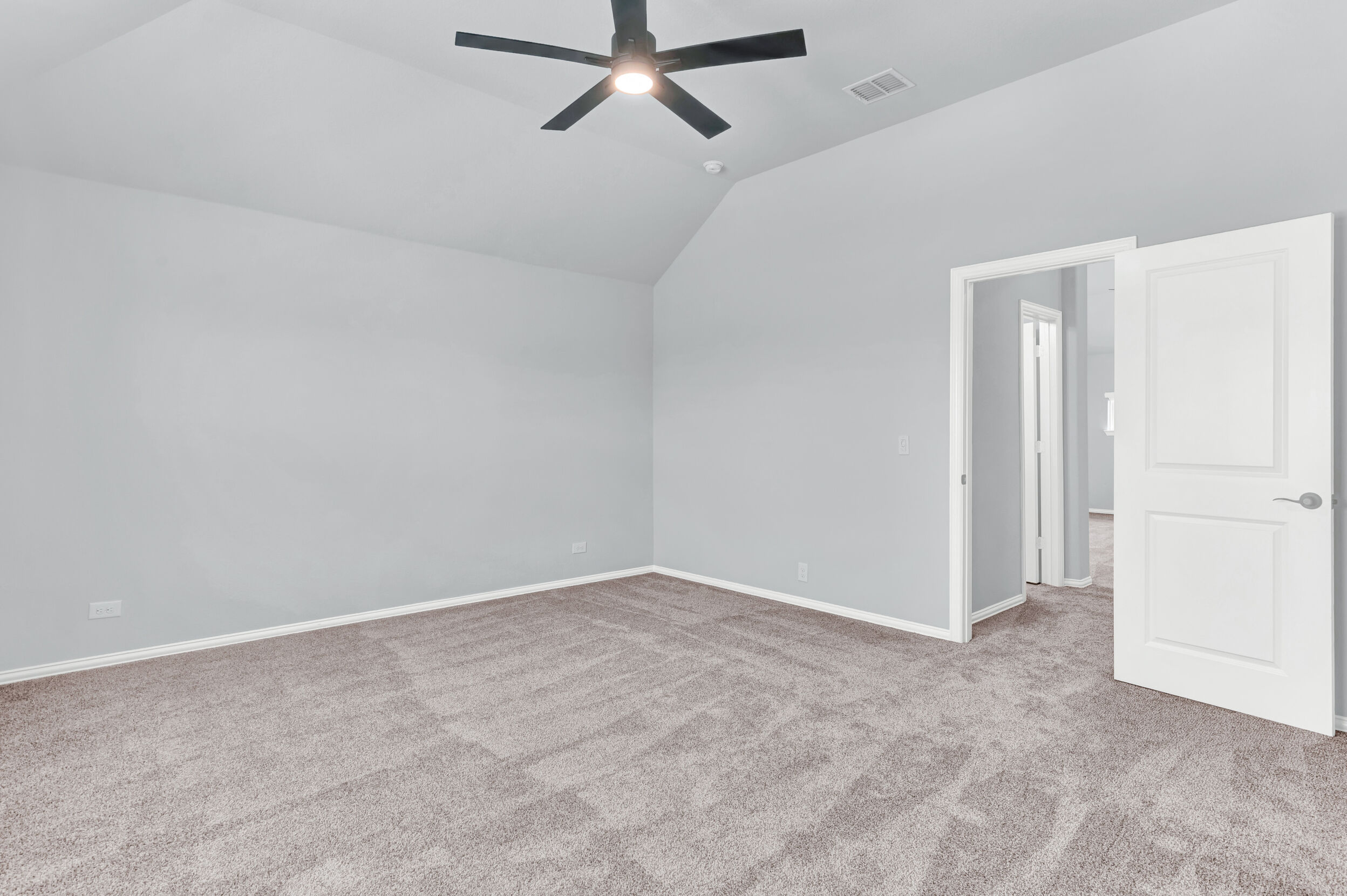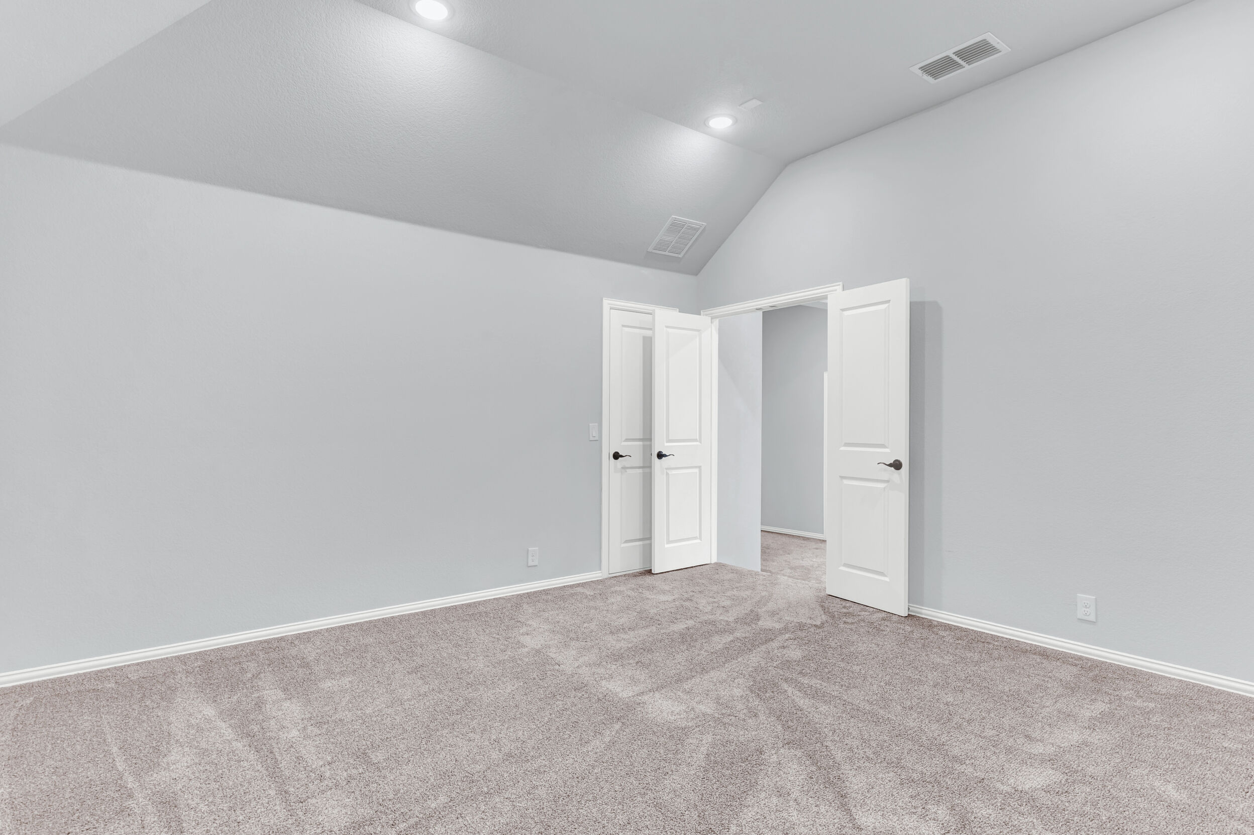 Enjoy the look and feel of a brand-new home without the wait or the new-construction price. Built in 2023 and impeccably maintained, this stunning two-story residence blends modern design, premium finishes, and a highly functional layout ideal for everyday living and entertaining. The architecturally pleasing stone and brick exterior makes a strong first impression, complemented by an 8-foot custom front door and cedar garage door. Inside, site-finished hardwood floors, a stacked stone direct-vent fireplace, and thoughtfully selected upgrades set the tone for a polished yet welcoming interior. Multiple bedrooms on the main level provide flexibility, while dedicated spaces including a private study, formal dining room, game room, and media room ensure room for work, play, and relaxation. The well-appointed kitchen is designed to impress, featuring quartz countertops, a large island workspace, gas cooktop, wood vent hood, pot-and-pan drawers, and a built-in microwave and oven tower that opens to an adjacent breakfast nook. The open floor plan design connects the kitchen to the main living areas, creating a natural flow for gatherings both large and small. Privately situated on the main level, the spacious primary suite offers over 300 square feet of comfort. The luxury ensuite bath includes a drop-in deck-mounted tub, separate shower, granite surfaces, and a generous walk-in closet. An extended covered patio expands the living space outdoors, while the 2-car garage provides ample room for vehicles and seasonal storage. Located in the sought-after Ridge Ranch community, residents enjoy resort-style amenities including pools, parks, trails, and playgrounds. Thoughtful safety features, energy-efficient construction, and move-in-ready condition make this home an exceptional value in a thriving neighborhoodoffering all the benefits of new construction, already perfected.