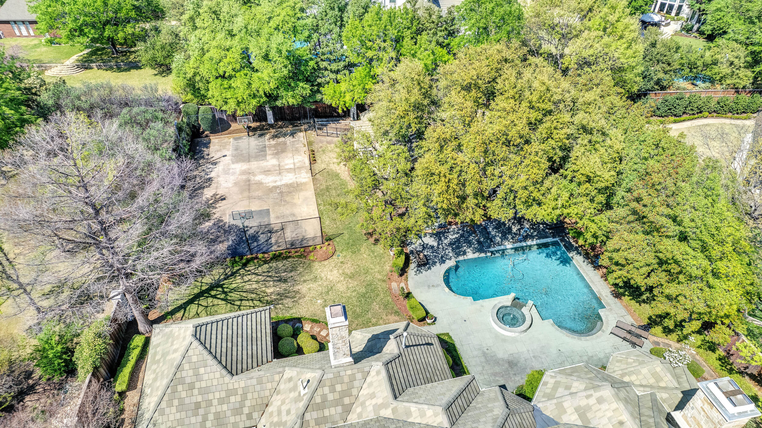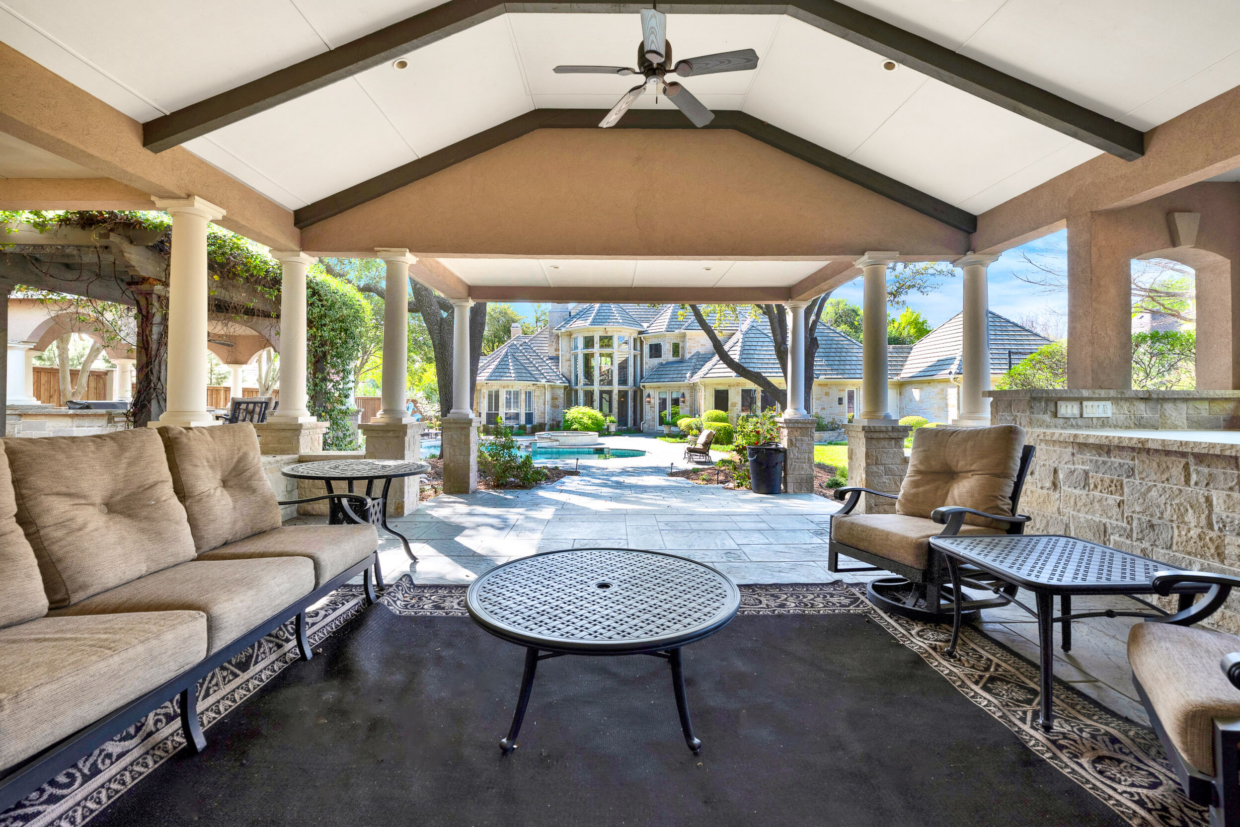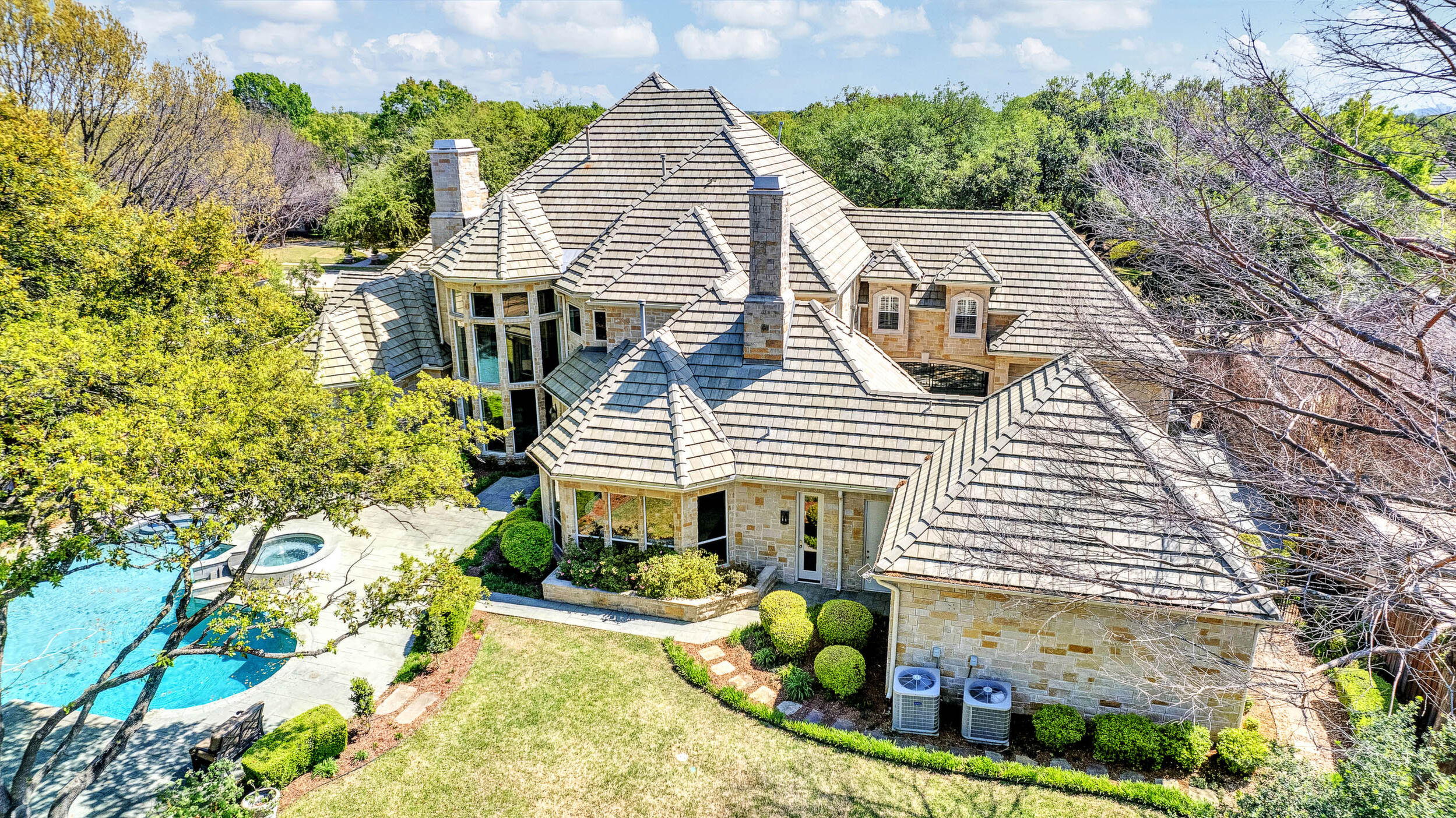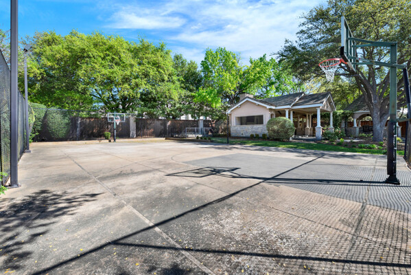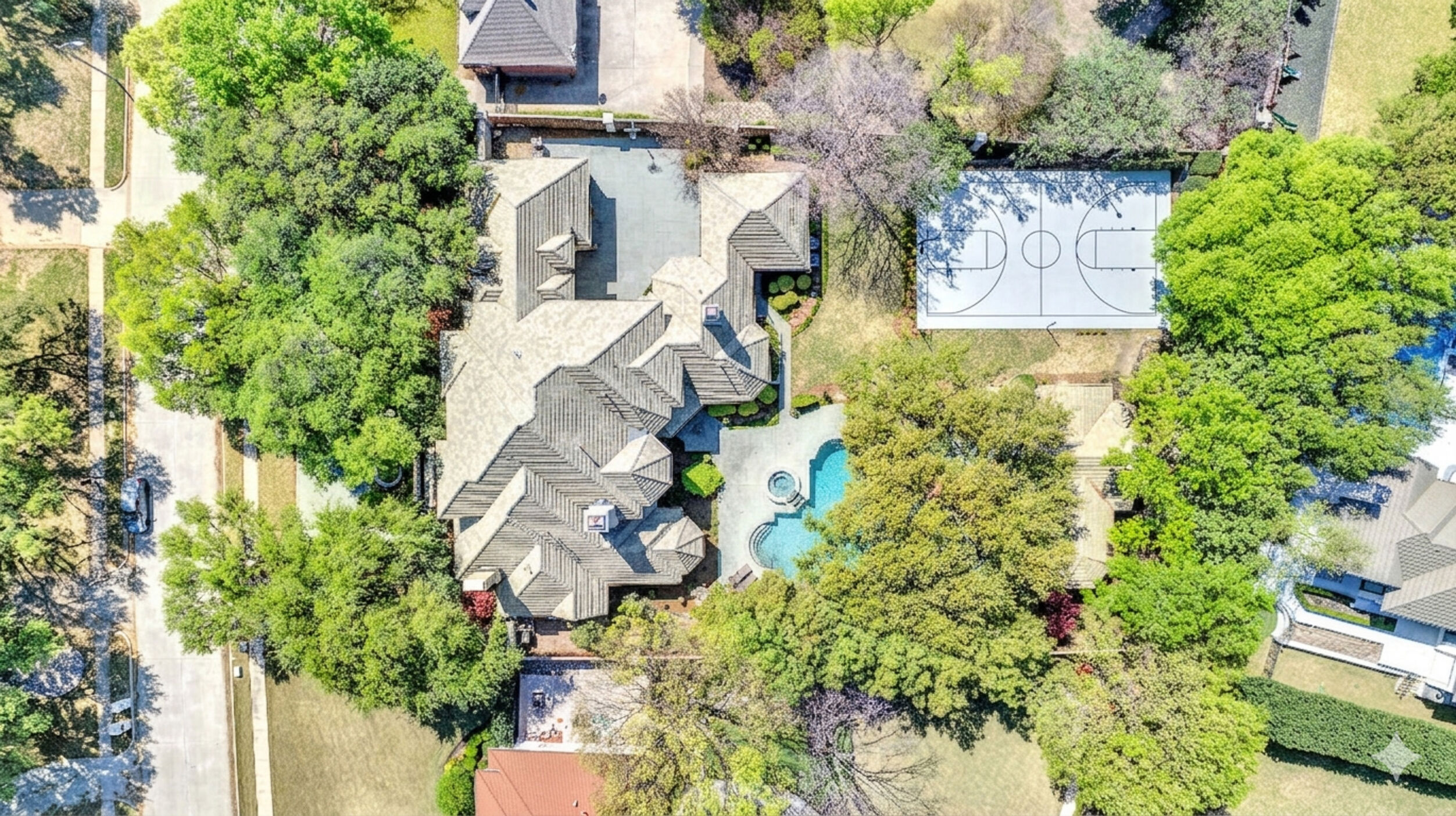 This luxurious 0.731-acre estate in exclusive Willow Bend Country stands out for its exceptional craftsmanship & bespoke detailing. Enjoy unparalleled privacy & sweeping views, setting this property apart from others. Enter through a grand statement doorway into the formal living & dining rooms. Soaring ceilings & oversized windows frame a resort-style backyard unique in both size & amenities. Outdoors, entertain with a sparkling pool, spa, dedicated sports court, & a covered living area with a fireplace. A second covered area with a bar, built-in grill, & smoker creates a premier space for gatherings. Professional landscape lighting further elevates the ambiance. Inside, a private study with a fireplace, custom built-ins, & rich paneling provides an elegant work-from-home retreat. The expansive main-level primary suite includes a fireplace & bay windows with breathtaking backyard views, offering luxury seldom matched. An indulgent bath & an oversized walk-in closet with tailored built-ins add to the exclusive features. The main-level guest suite offers a private ensuite bath, catering to comfort and privacy for visitors. The chef-inspired kitchen is a unique highlight, featuring premium Wolf appliances: a 6-burner gas range with griddle, double ovens, a convection steam oven, a warming drawer, a microwave, & a large walk-in pantry. Sub-Zero refrigerator, ice maker, & a built-in Miele coffee espresso system elevate daily living & complete the space. A bar & a Subzero dual-zoned 125-bottle wine refrigerator accentuate entertaining, flowing into the adjacent family room with a fireplace, a concealed safe, & panoramic backyard views. Upstairs, enjoy a large game room & a versatile bonus room with a steam sauna, offering unmatched flexibility. Three spacious bedrooms complete the upper floor. Additional highlights include a solid stone exterior, concrete roofing, 5 fireplaces, Hunter Douglas automated shades, a 4-car gated garage, & exceptional closet space throughout.