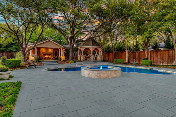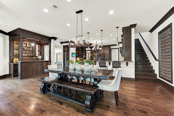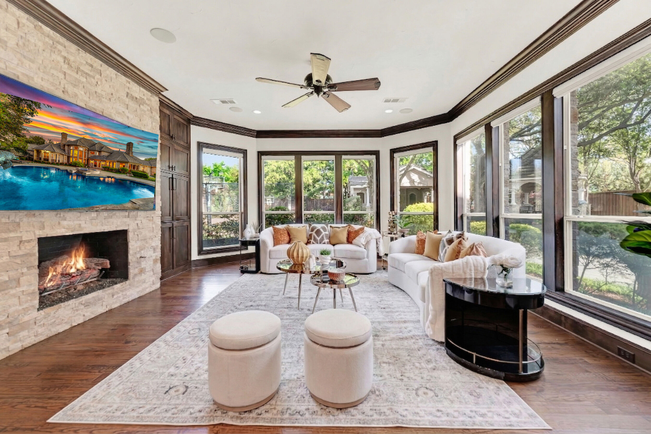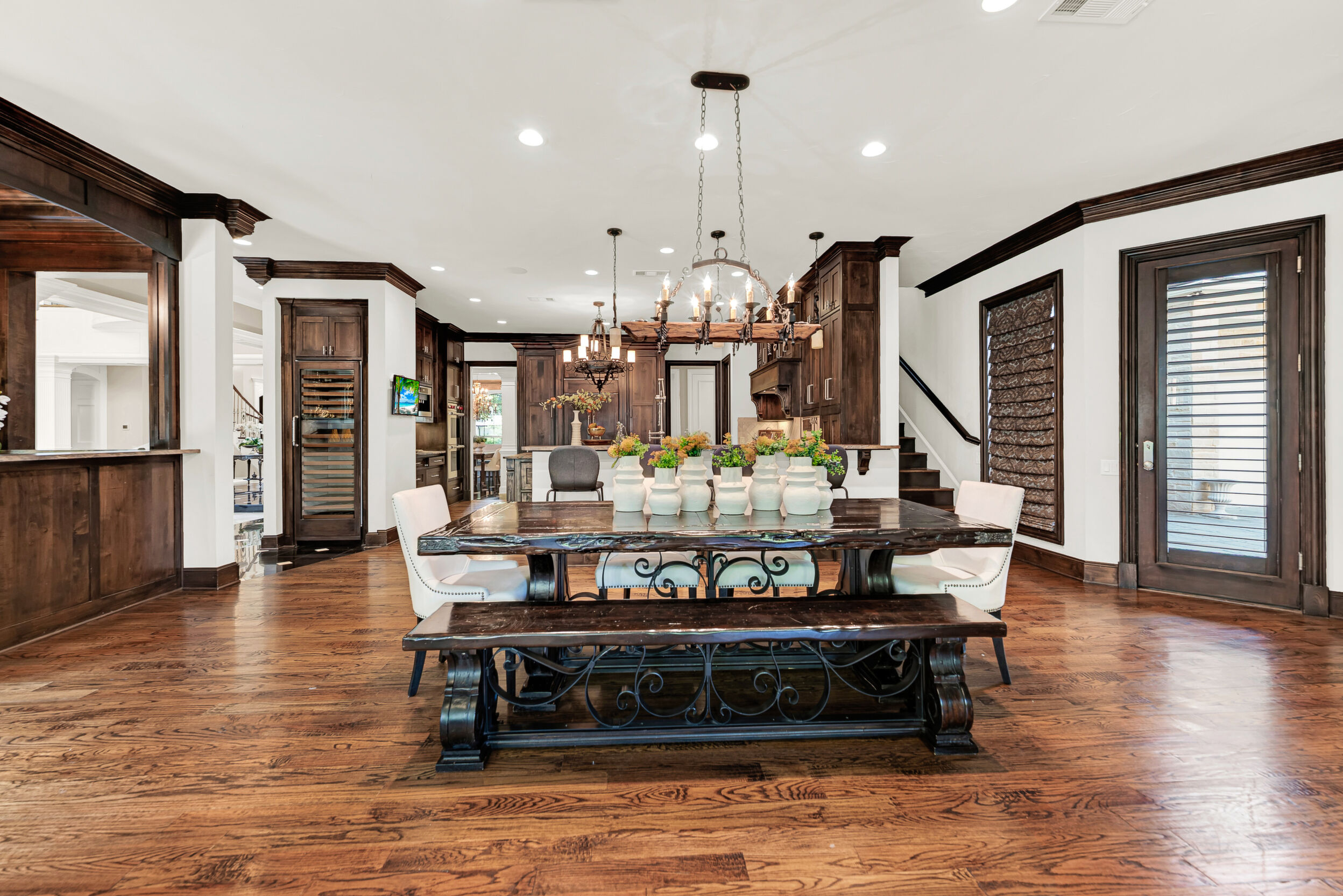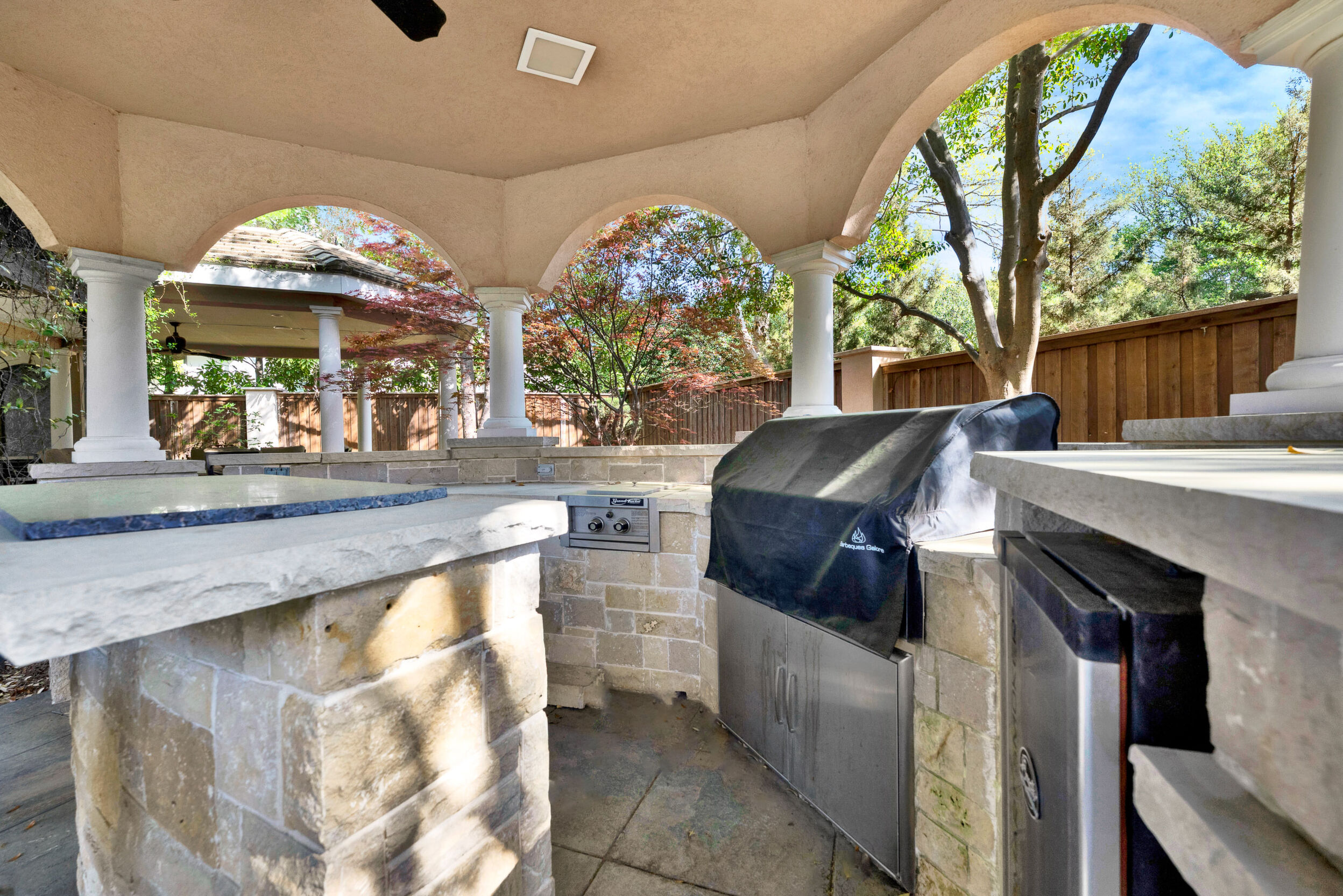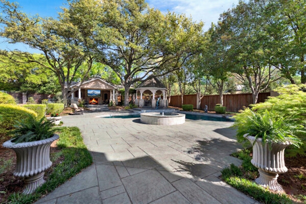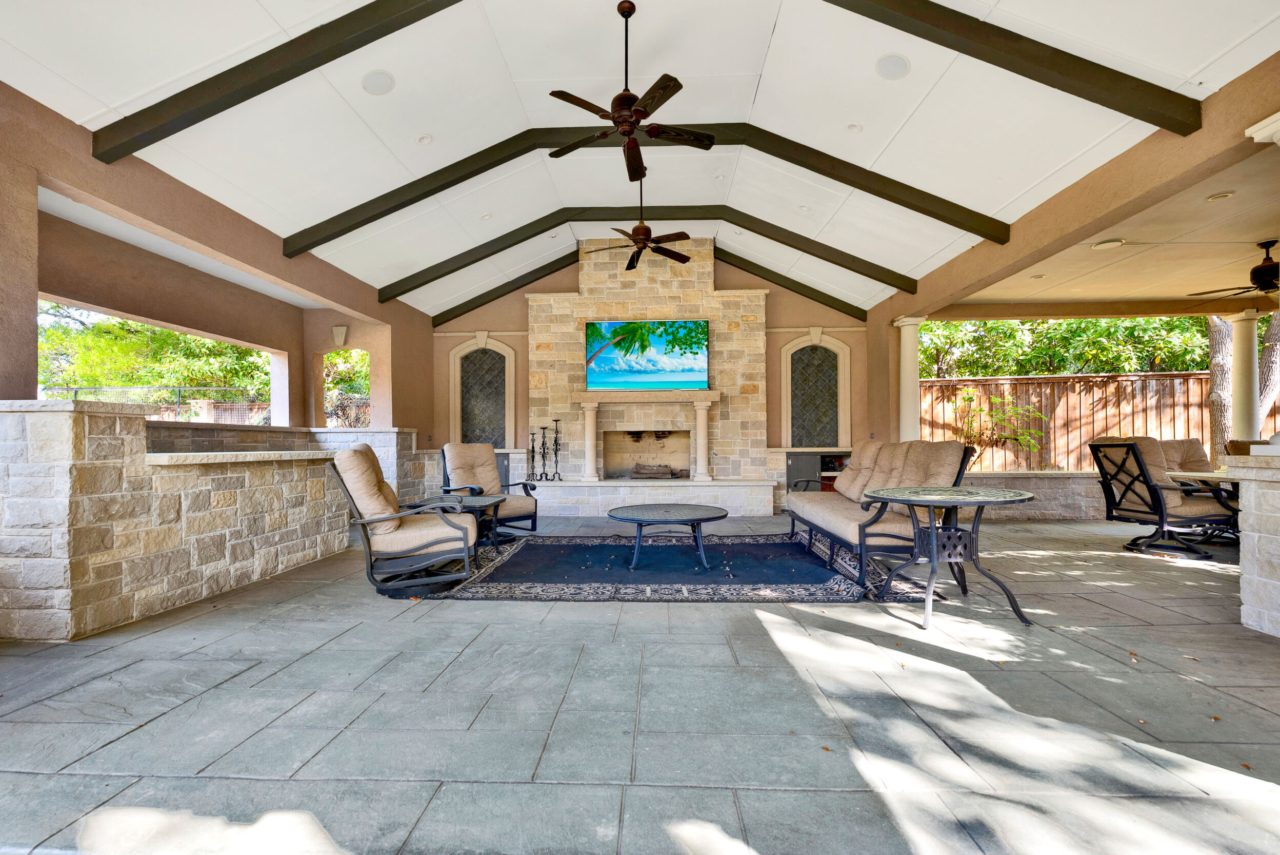This luxurious 0.731-acre estate in exclusive Willow Bend Country stands out for its exceptional craftsmanship & bespoke detailing. Enjoy unparalleled privacy & sweeping views, setting this property apart from others. Enter through a grand statement doorway into the formal living & dining rooms. Soaring ceilings & oversized windows frame a resort-style backyard unique in both size & amenities. Outdoors, entertain with a sparkling pool, spa, dedicated sports court, & a covered living area with a fireplace. A second covered area with a bar, built-in grill, & smoker creates a premier space for gatherings. Professional landscape lighting further elevates the ambiance. Inside, a private study with a fireplace, custom built-ins, & rich paneling provides an elegant work-from-home retreat. The expansive main-level primary suite includes a fireplace & bay windows with breathtaking backyard views, offering luxury seldom matched. An indulgent bath & an oversized walk-in closet with tailored built-ins add to the exclusive features. The main-level guest suite offers a private ensuite bath, catering to comfort and privacy for visitors. The chef-inspired kitchen is a unique highlight, featuring premium Wolf appliances: a 6-burner gas range with griddle, double ovens, a convection steam oven, a warming drawer, a microwave, & a large walk-in pantry. Sub-Zero refrigerator, ice maker, & a built-in Miele coffee espresso system elevate daily living & complete the space. A bar & a Subzero dual-zoned 125-bottle wine refrigerator accentuate entertaining, flowing into the adjacent family room with a fireplace, a concealed safe, & panoramic backyard views. Upstairs, enjoy a large game room & a versatile bonus room with a steam sauna, offering unmatched flexibility. Three spacious bedrooms complete the upper floor. Additional highlights include a solid stone exterior, concrete roofing, 5 fireplaces, Hunter Douglas automated shades, a 4-car gated garage, & exceptional closet space throughout.