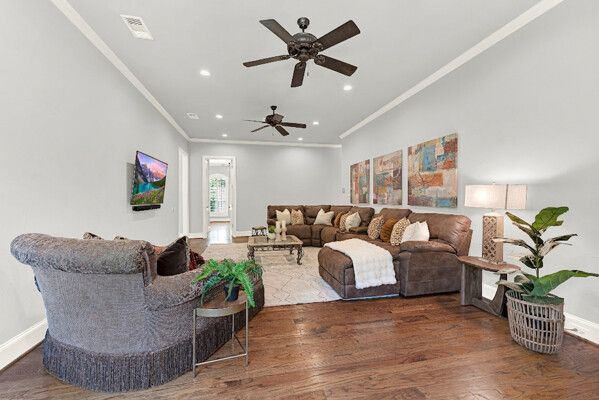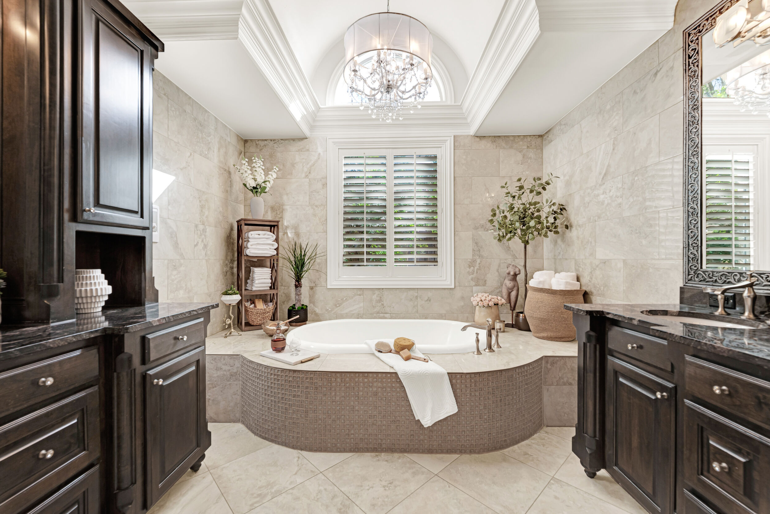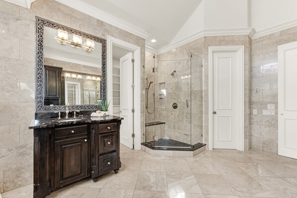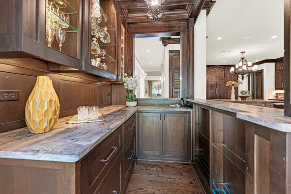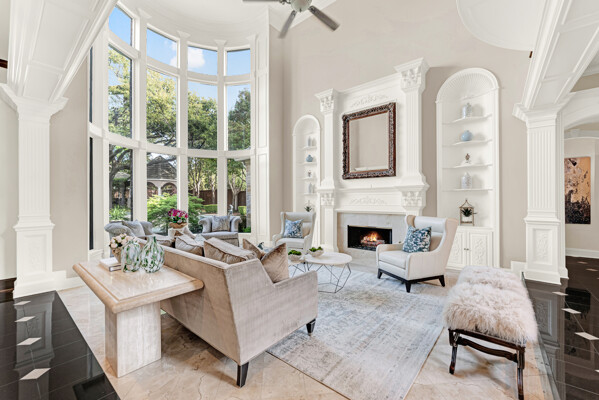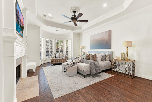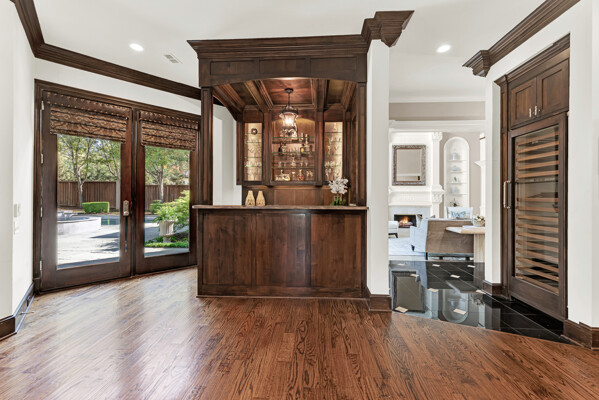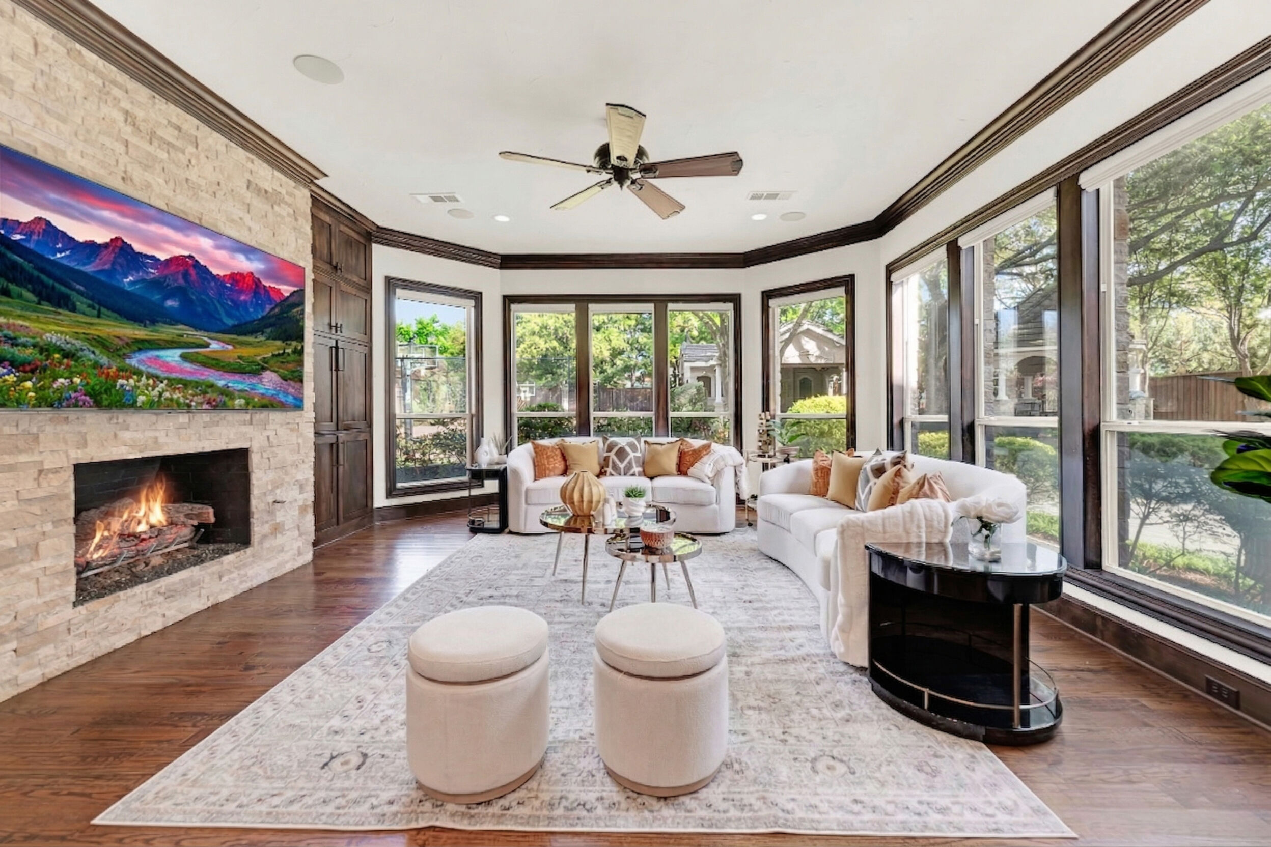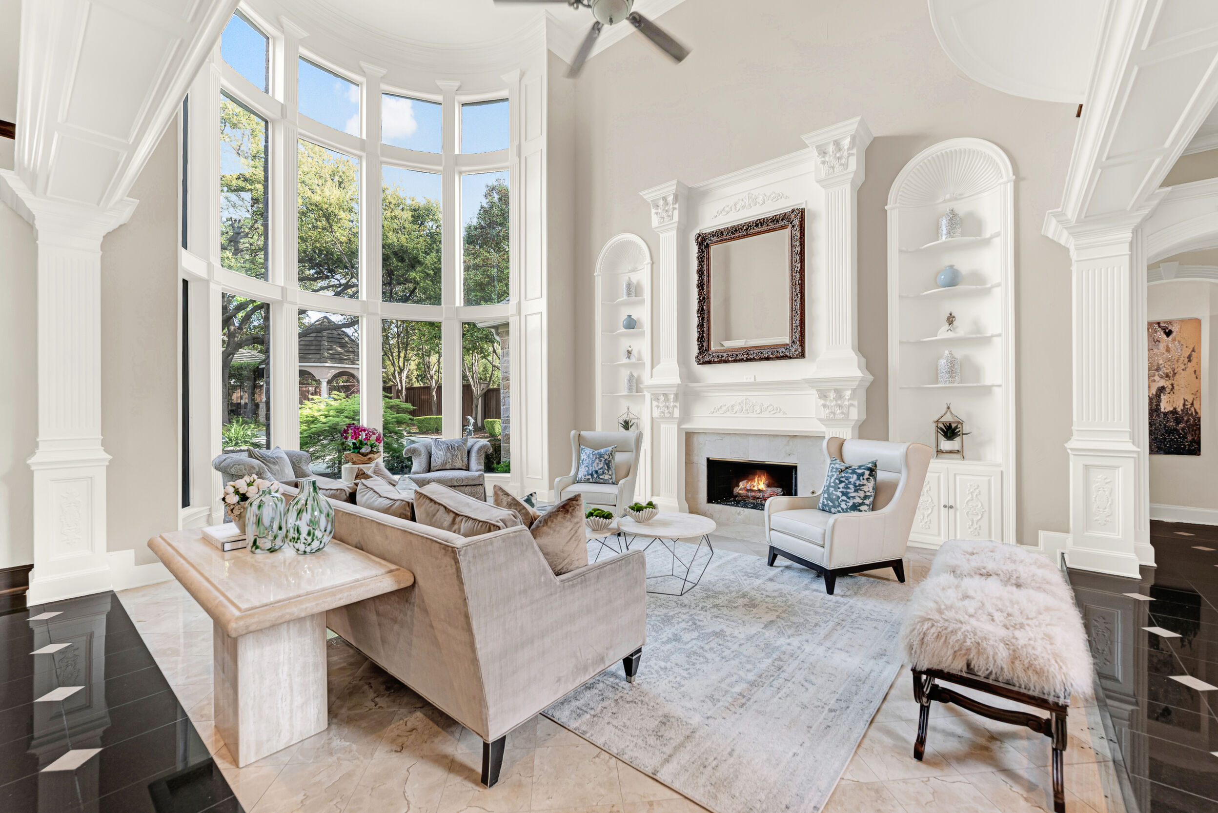 This luxurious 0.731-acre estate in exclusive Willow Bend Country stands out for its exceptional craftsmanship & bespoke detailing. Enjoy unparalleled privacy & sweeping views, setting this property apart from others. Enter through a grand statement doorway into the formal living & dining rooms. Soaring ceilings & oversized windows frame a resort-style backyard unique in both size & amenities. Outdoors, entertain with a sparkling pool, spa, dedicated sports court, & a covered living area with a fireplace. A second covered area with a bar, built-in grill, & smoker creates a premier space for gatherings. Professional landscape lighting further elevates the ambiance. Inside, a private study with a fireplace, custom built-ins, & rich paneling provides an elegant work-from-home retreat. The expansive main-level primary suite includes a fireplace & bay windows with breathtaking backyard views, offering luxury seldom matched. An indulgent bath & an oversized walk-in closet with tailored built-ins add to the exclusive features. The main-level guest suite offers a private ensuite bath, catering to comfort and privacy for visitors. The chef-inspired kitchen is a unique highlight, featuring premium Wolf appliances: a 6-burner gas range with griddle, double ovens, a convection steam oven, a warming drawer, a microwave, & a large walk-in pantry. Sub-Zero refrigerator, ice maker, & a built-in Miele coffee espresso system elevate daily living & complete the space. A bar & a Subzero dual-zoned 125-bottle wine refrigerator accentuate entertaining, flowing into the adjacent family room with a fireplace, a concealed safe, & panoramic backyard views. Upstairs, enjoy a large game room & a versatile bonus room with a steam sauna, offering unmatched flexibility. Three spacious bedrooms complete the upper floor. Additional highlights include a solid stone exterior, concrete roofing, 5 fireplaces, Hunter Douglas automated shades, a 4-car gated garage, & exceptional closet space throughout.
