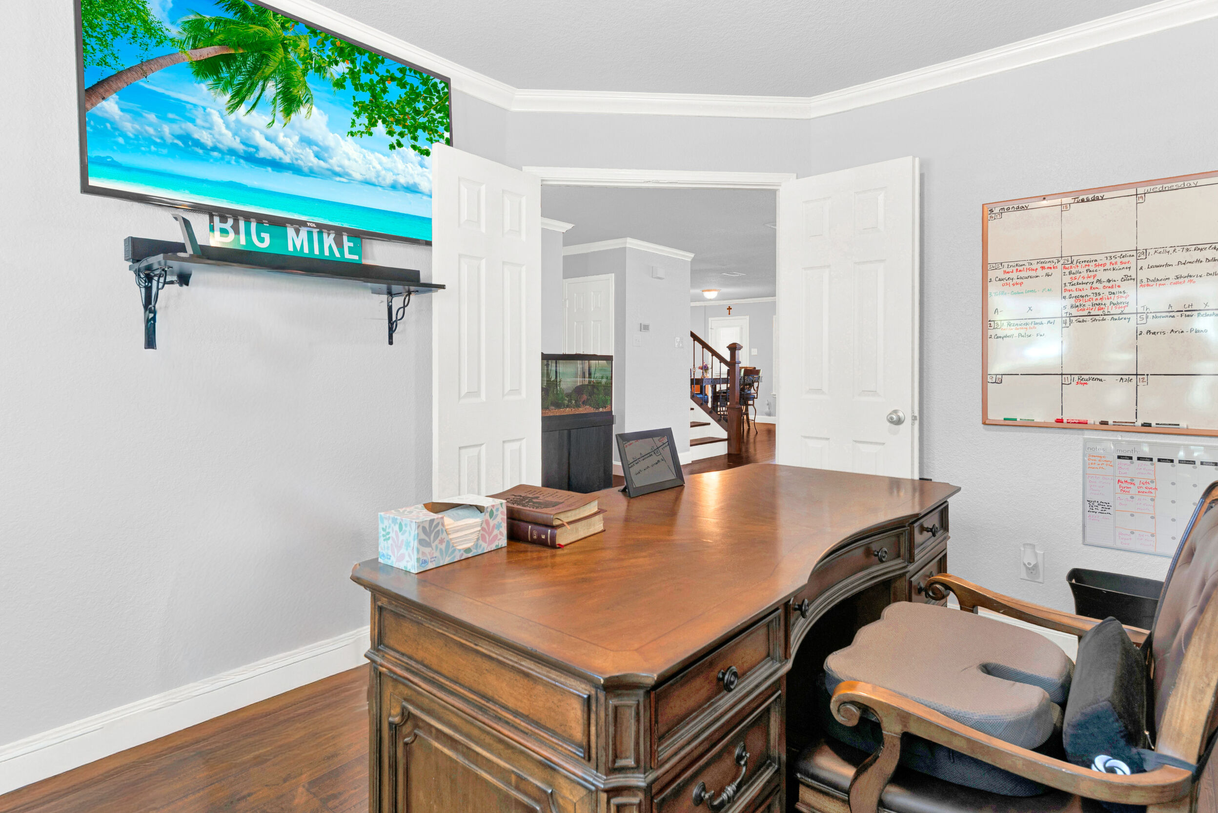 Step into timeless comfort and modern living in this beautifully maintained two-story brick home nestled in a peaceful North Fort Worth community. From the moment you arrive, the inviting curb appealcomplete with a stately tree, manicured lawn, and three-car garagesets the tone for what awaits inside. The warm and welcoming interior offers an open layout perfect for both everyday living and entertaining. A spacious living room with rich wood flooring and a cozy fireplace flows effortlessly into the bright kitchen, featuring stainless steel appliances, an oversized island, and generous cabinetry ideal for any home chef. The main floor also includes a versatile study or flex space, perfect for remote work or creative pursuits. Upstairs, a secondary living area offers even more room to unwind. The serene primary suite is designed for relaxation, with large windows that fill the space with natural light and an ensuite bath featuring dual sinks, a soaking tub, and a walk-in shower. Additional bedrooms are thoughtfully sized and ready to accommodate guests, hobbies, or growing needs. Step outside to the expansive backyardan entertainers dream with a covered patio overlooking lush green space, ready for BBQs, gatherings, or simply enjoying quiet evenings under the Texas sky. Conveniently located near Highway 287 and I-820, youll enjoy easy access to major shopping, dining, and recreation at nearby Eagle Mountain Lake, The Stockyards, and Alliance Town Center. Parks, schools, and community amenities are just moments away, offering a lifestyle that balances comfort, convenience, and connection. This exceptional home blends classic charm with modern functionalityready to welcome its next chapter and the memories youll make within its walls.