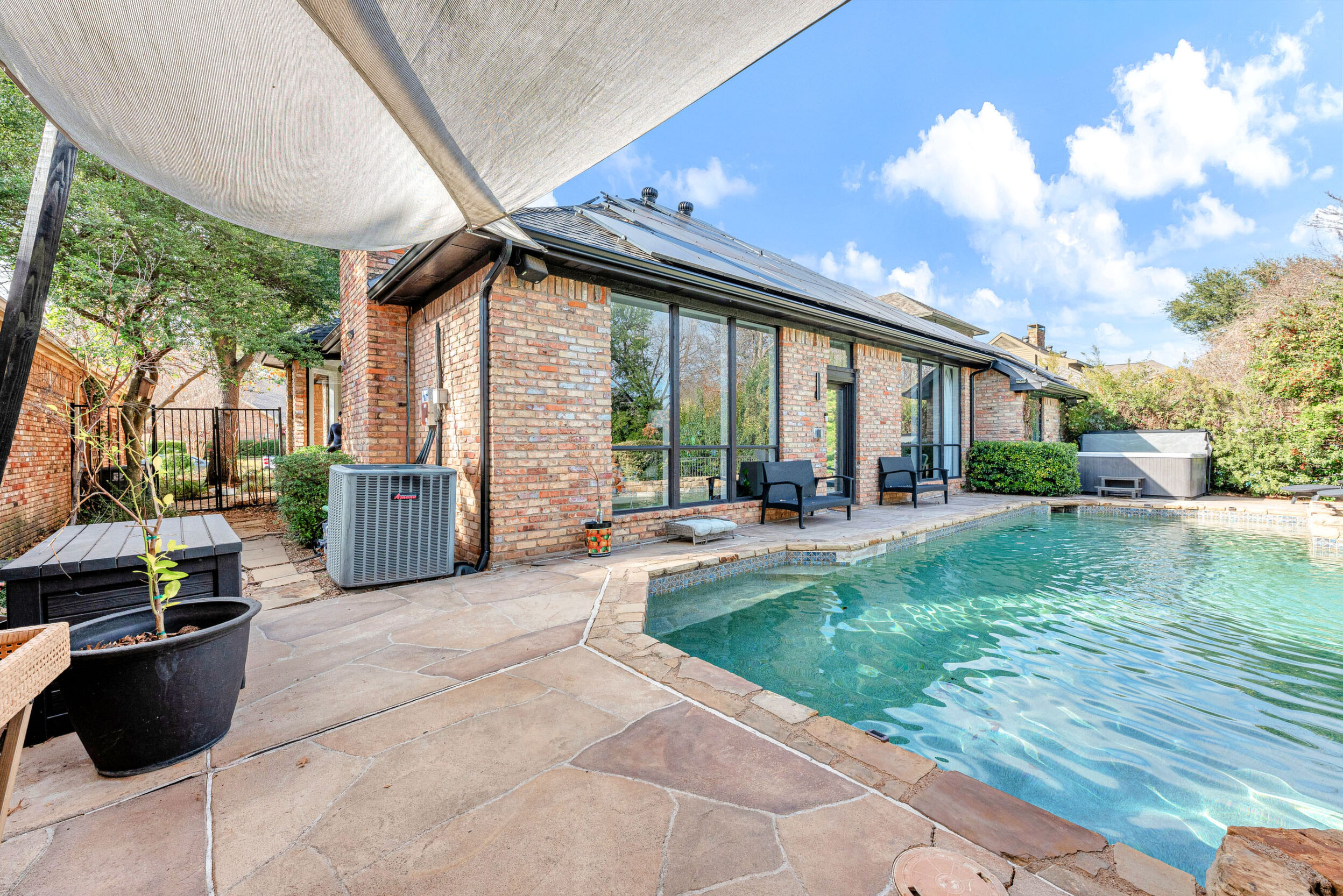 A classic Texas brick home meets stunning modern luxury in this exquisitely renovated residence located in the highly sought-after Prestonwood neighborhood of Dallas. Tucked away as a true hidden gem, this home seamlessly blends timeless charm with designer finishes and thoughtful updates throughout. 6558 Laurel Valley Road offers 3 spacious bedrooms and 2.5 beautifully updated bathrooms, all on one level for effortless living. The home is fully furnished and styled with intention, creating a turnkey opportunity ideal for both primary residence and executive living. The open, inviting layout is complemented by abundant natural light and a warm, sophisticated aesthetic. Perfectly positioned, the home provides easy access to Addison, Frisco, Richardson, Plano and Downtown Dallas, while being just minutes from premier shopping, dining, entertainment, and highly regarded schools in Richardson ISD. Step outside to your private backyard oasis, featuring a stunning stone pool, pergola-covered patio with built-in TV for outdoor entertaining, and an elevated jacuzzi overlooking serene green spacea rare and peaceful setting ideal for both relaxation and hosting guests. This exceptional property truly combines location, lifestyle, and convenience in one beautifully curated package. Schedule your private showing Starting FEB 1st and experience everything this lease has to offer.